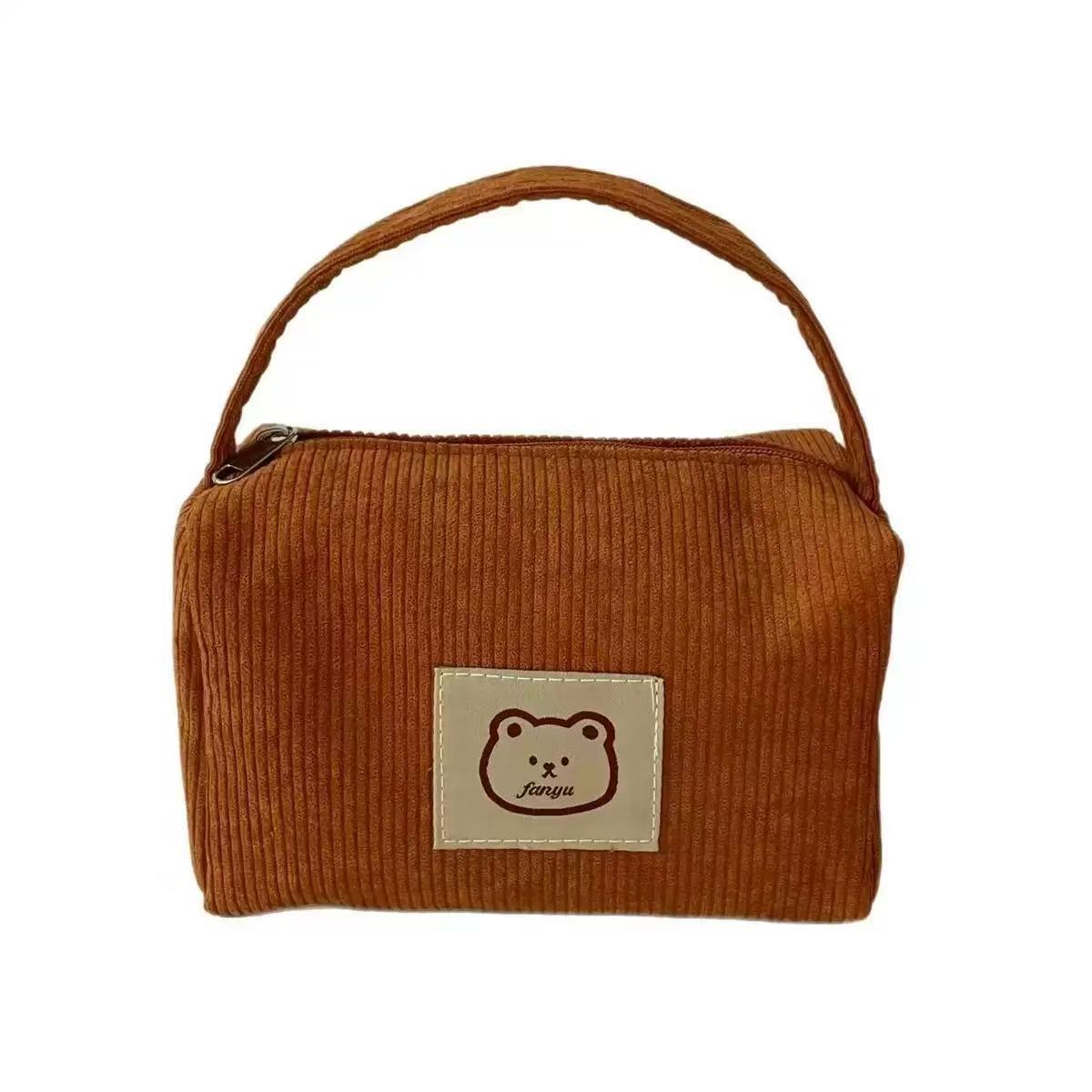 New Corduroy Portable Cosmetic Bag for Female Students, K-Style, Cute Outing Handbag, Female Large-Capacity Toiletry Bag, Trendy