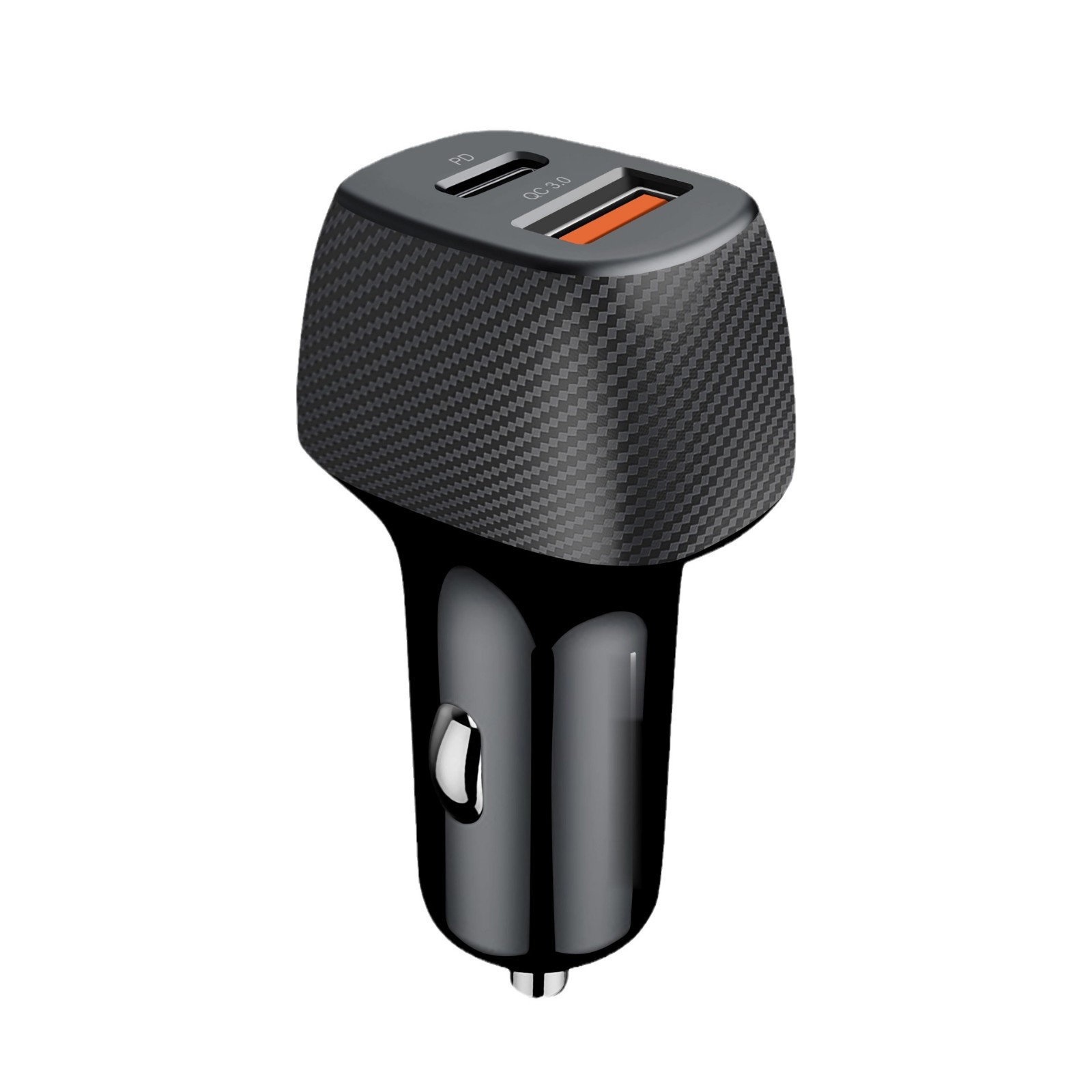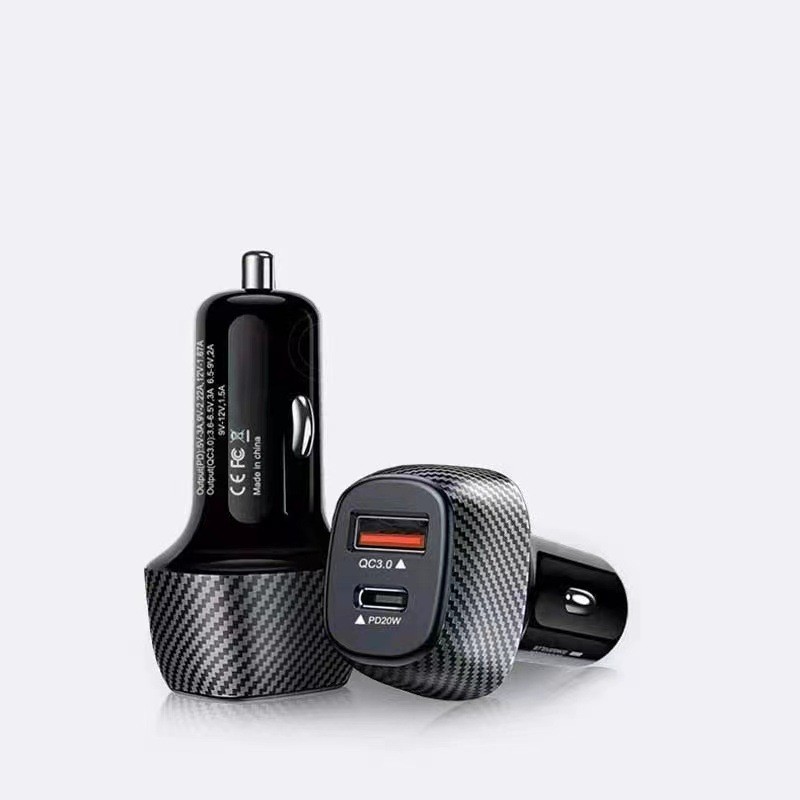 New Cross-Border 38W Carbon Fiber Car Charger Qc3.0 Car Adapter Fast Charging Car Charger Wholesale in Stock