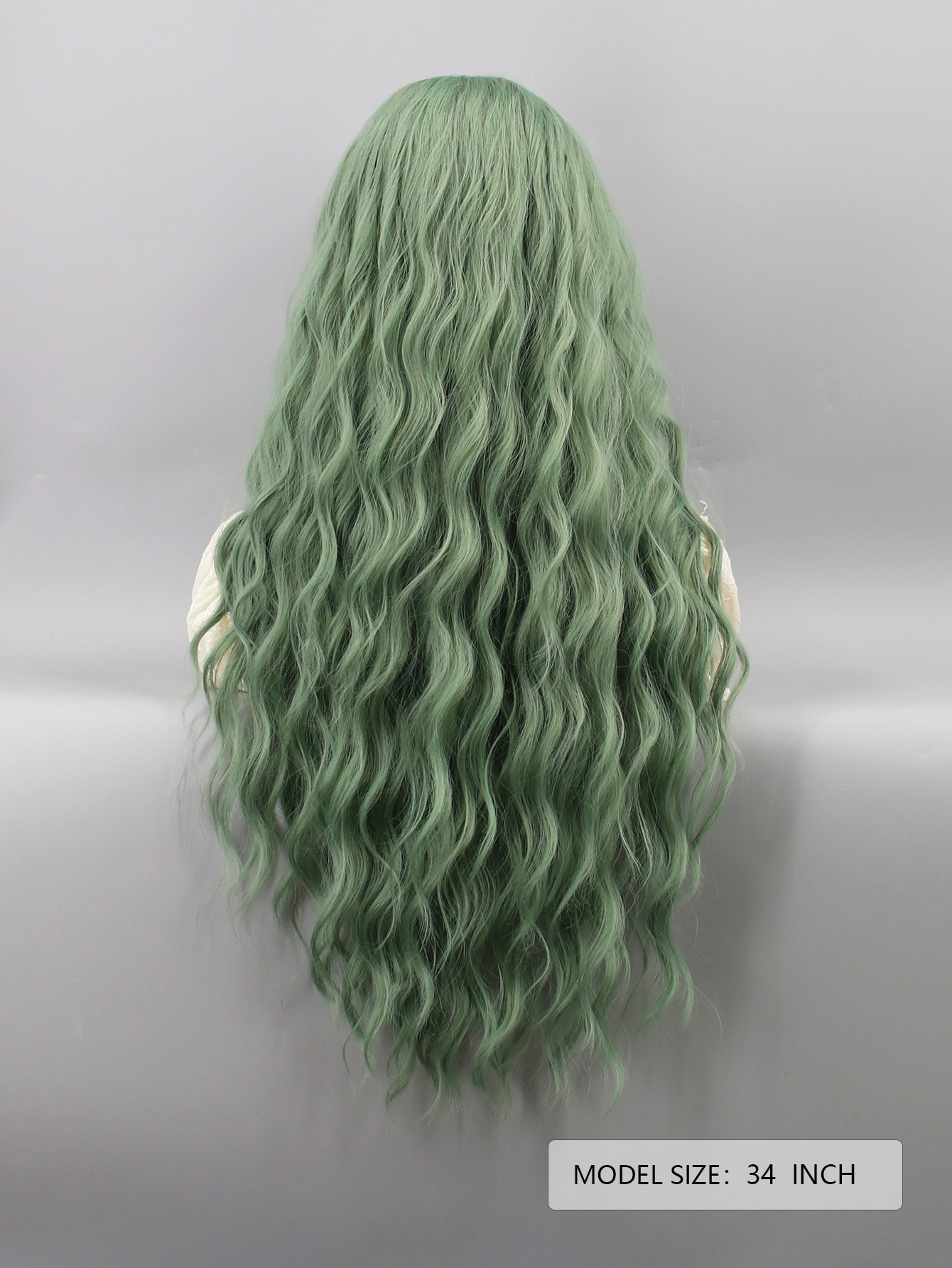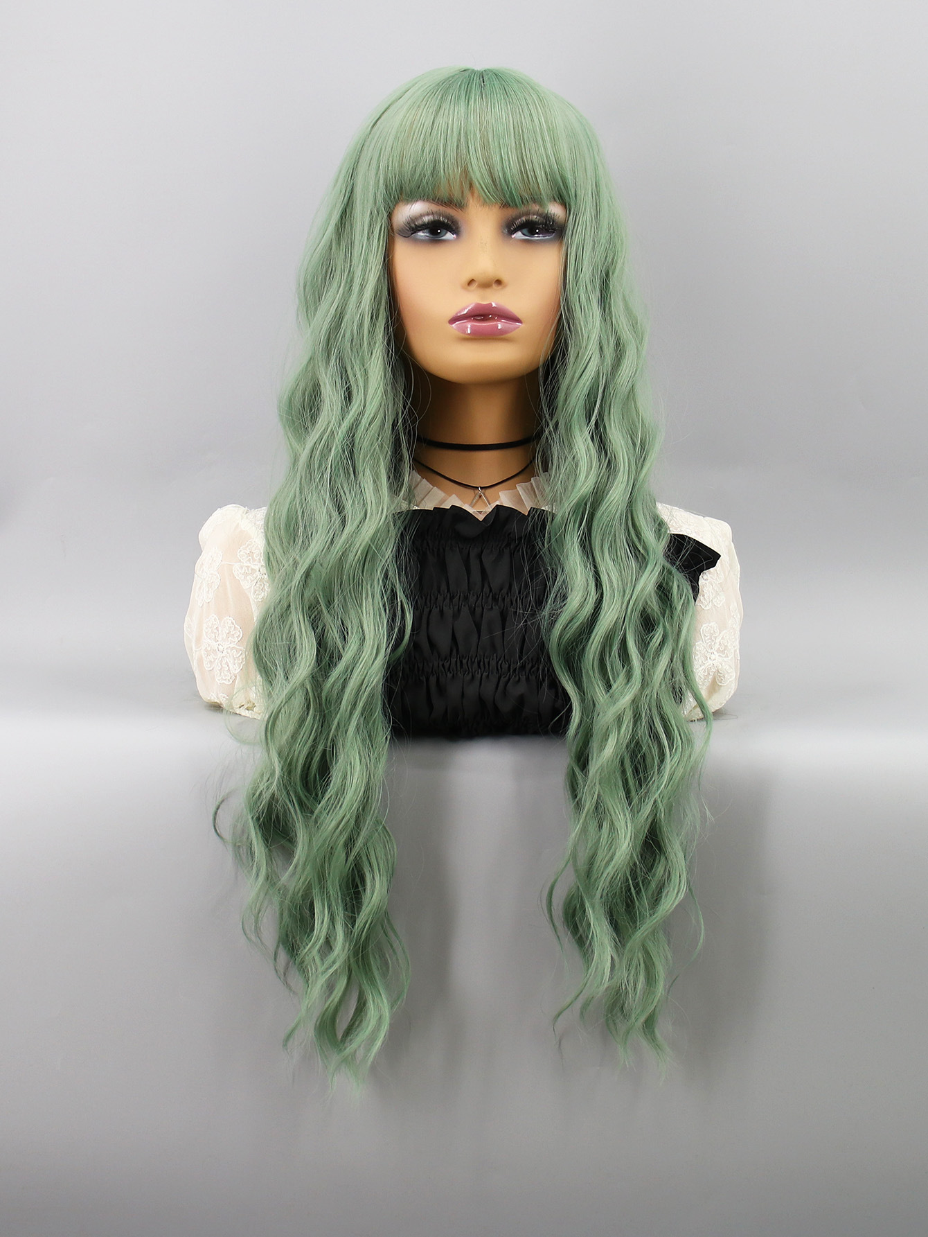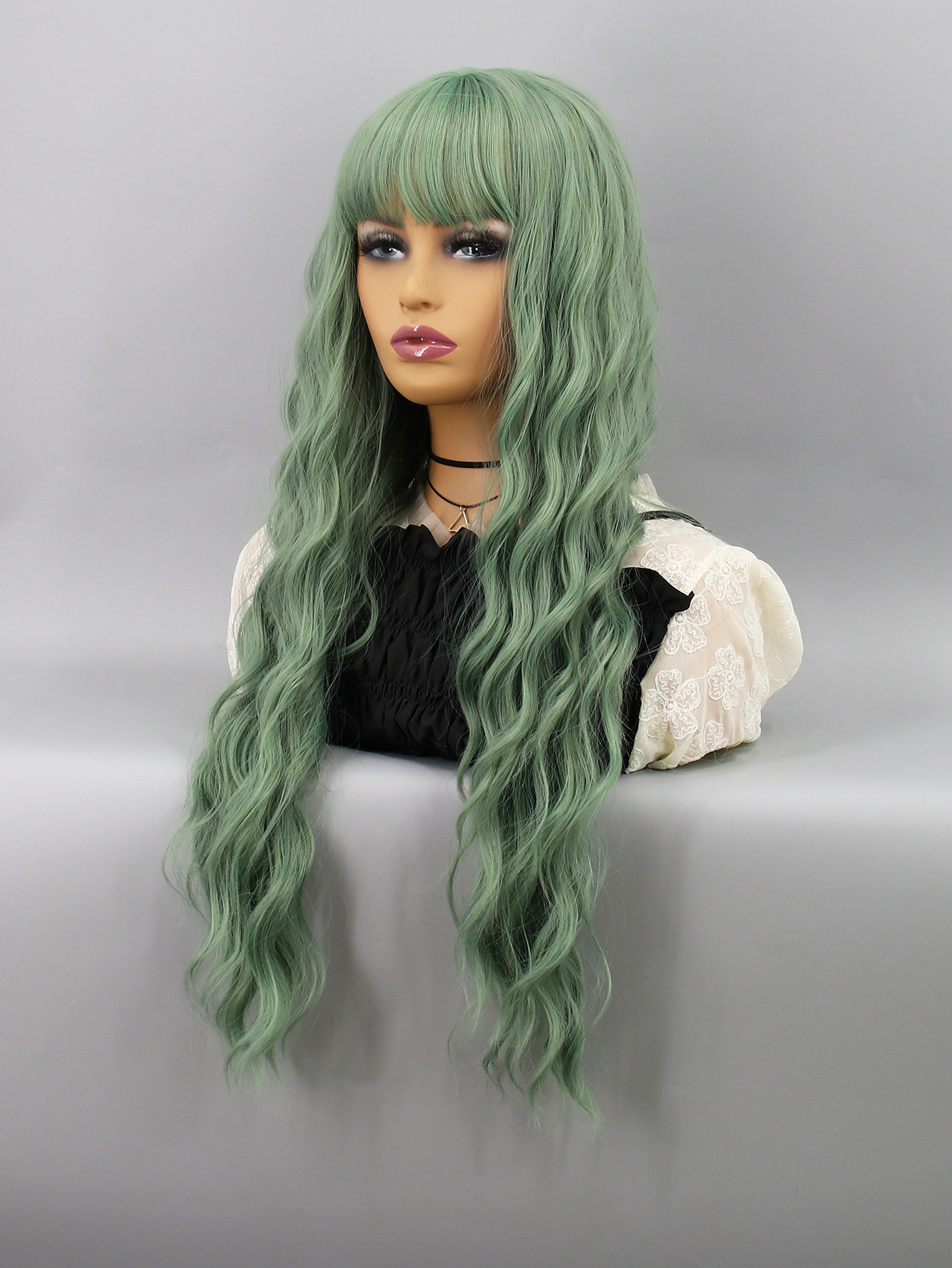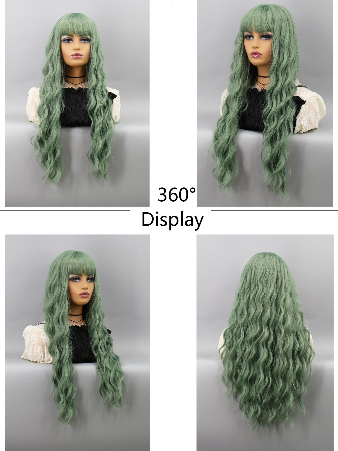 New cross-border Amazon neat bangs long wave fashion synthetic high temperature silk European and American wig women's full head cover wholesale