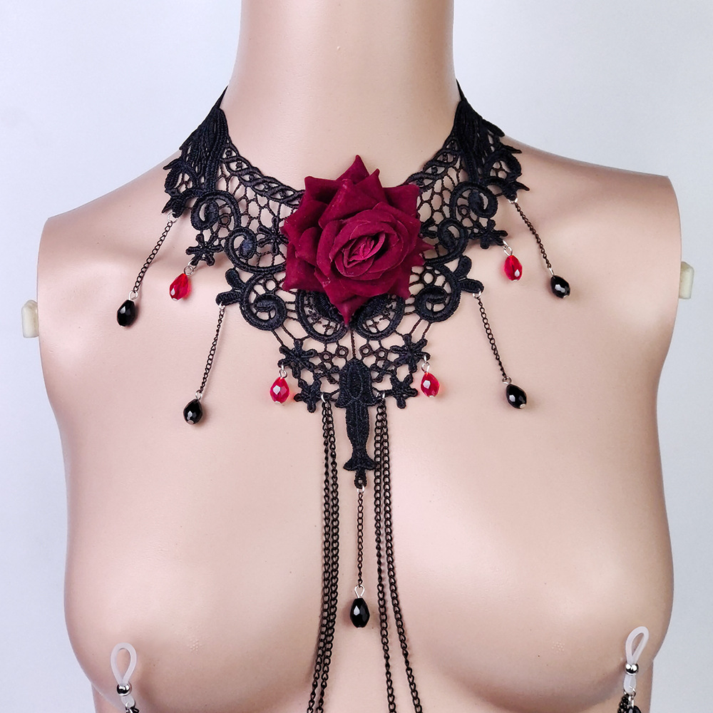 New European and American Cross-border Milk Chain Fun Breast Ring Lace Rose Necklace Corset Chain Bikini Body Chain Nipple Chain