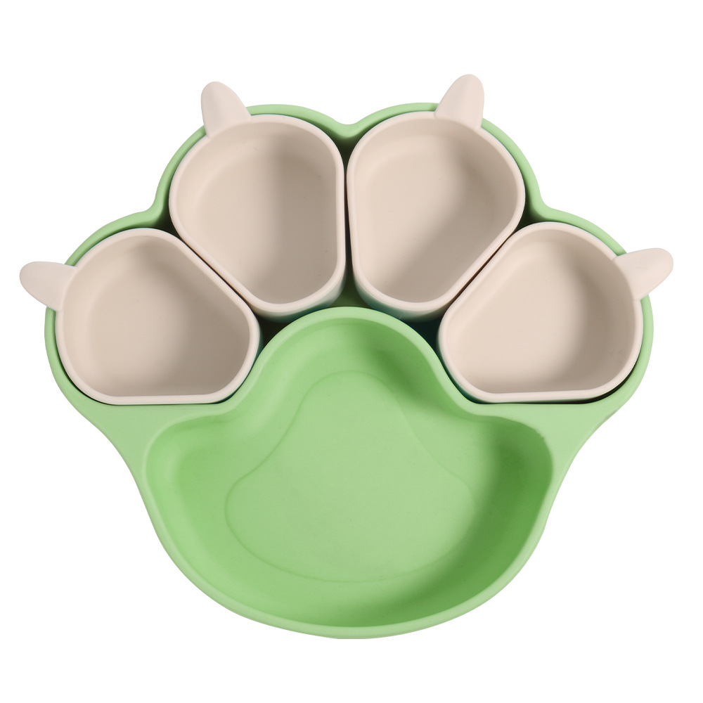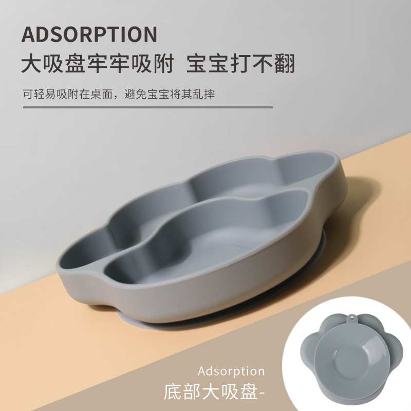 New Explosions Baby Silicone Bear Pow Dinner Plate Large Suction Cup Separated Platinum Tray Feeding Children's Tableware suit New