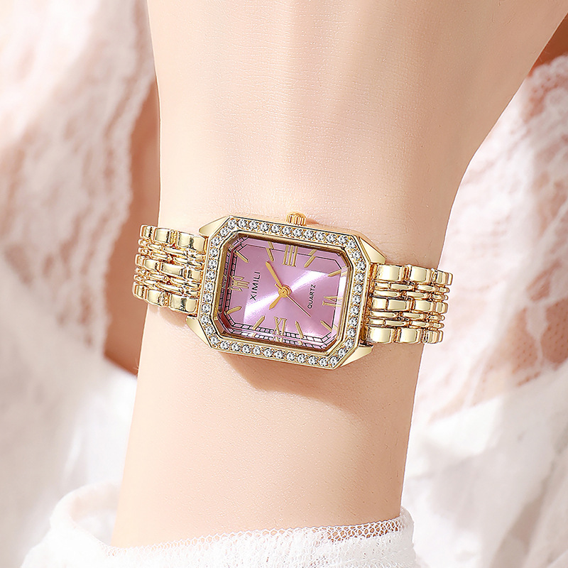 New Fashionable and Elegant Diamond-Encrusted Quartz Watch Square Women's Watch Women's Watch Light Luxury Temperament Watch Manufacturer Wholesale