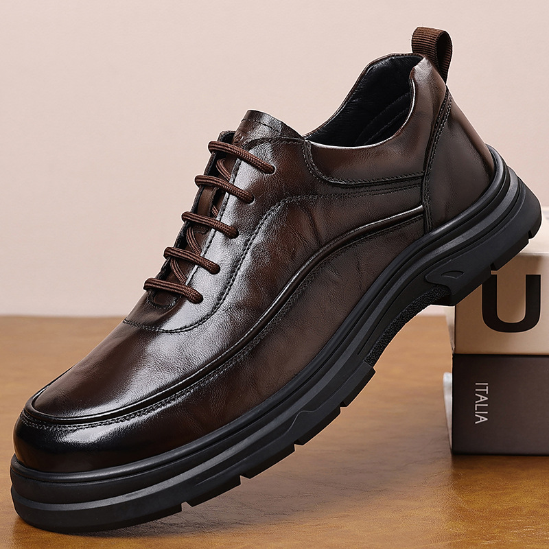 New First-Layer Cowhide Men's Leather Shoes, Business Casual Leather Shoes, Men's Genuine Leather, High-End, Soft Sole, Comfortable Office Trendy Brand