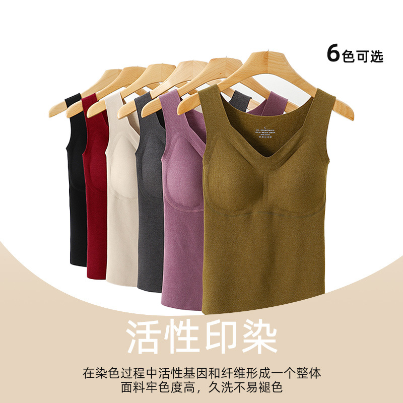 New German Velvet Vest for Women with Heated V Neck, Brushed Bra-Free Fleece-Lined Vest with Chest Pad, Winter Vest for Women to Heattech