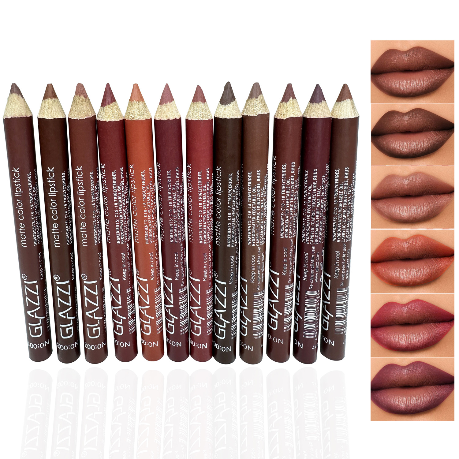 New GLAZZI12 color matte lip liner matte matte non-stick Cup lipstick pen hook line lip pen makeup