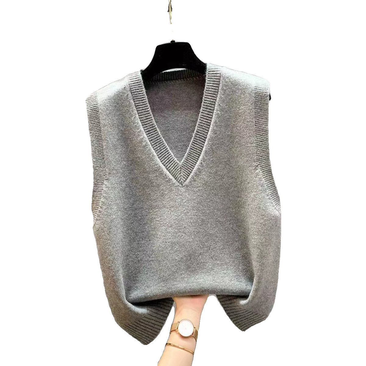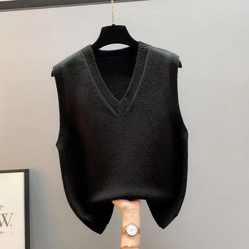 New Knitted Vest Jacket Spring and Autumn Vest Women's Sweater Korean-style V-neck Loose Autumn and Winter Vest Outer Wear