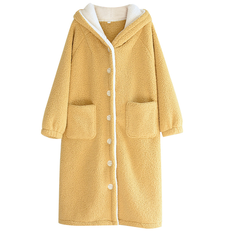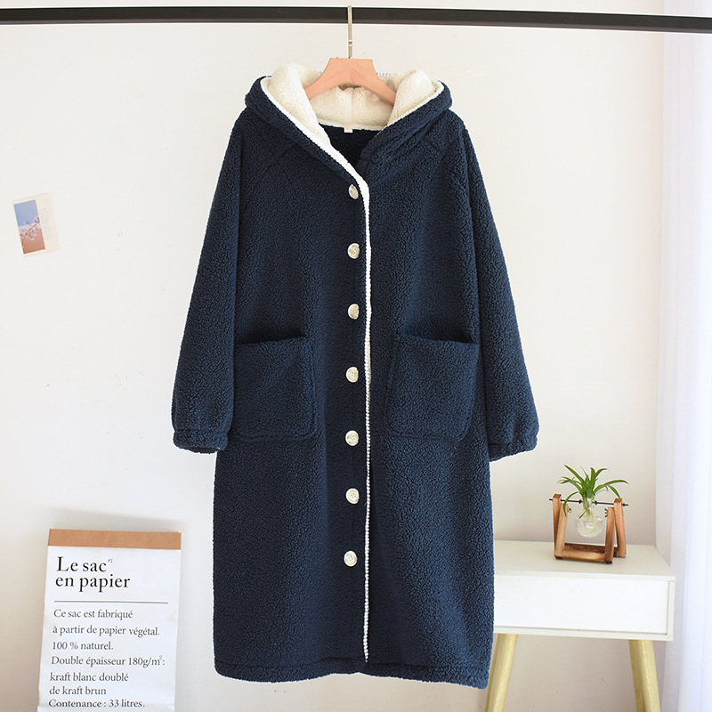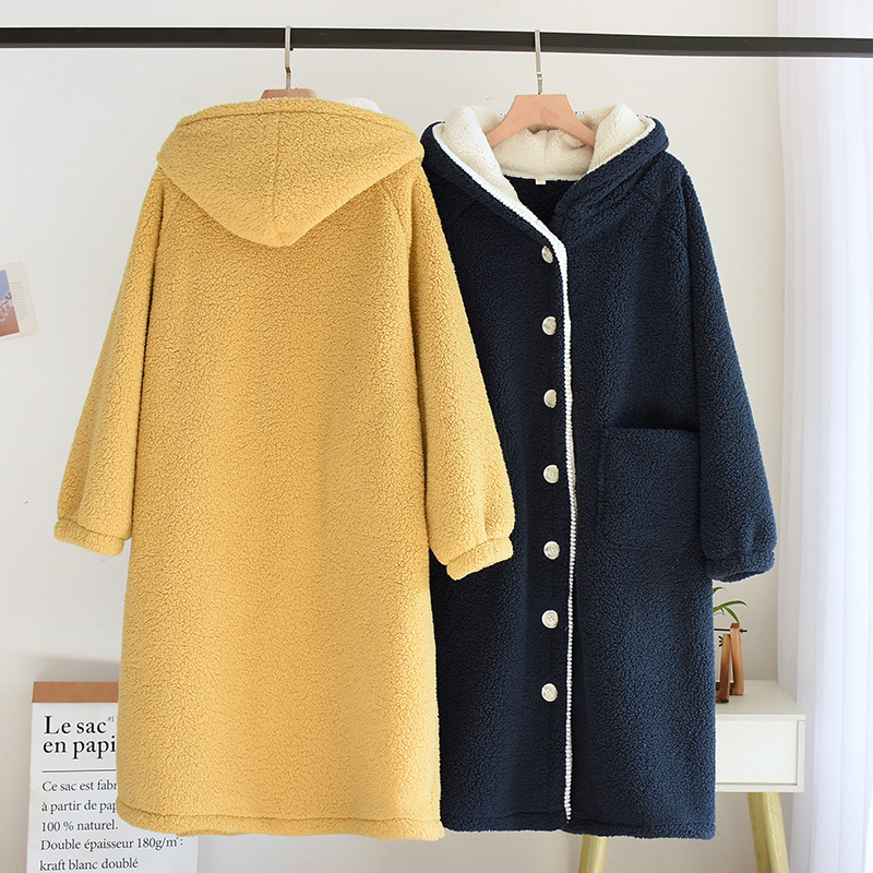 New Lamb Velvet Nightgown Women's Winter Pajamas Warm Fleece-Lined Thickened Bathrobe Women's Autumn and Winter Long Home Clothes for Hair