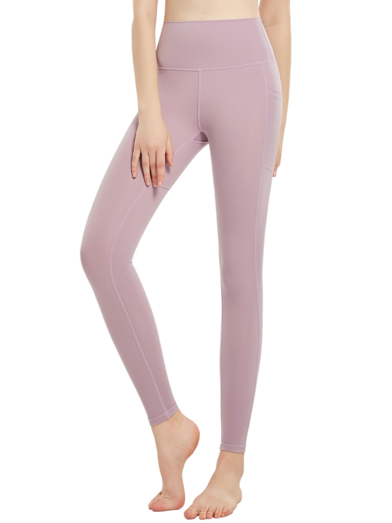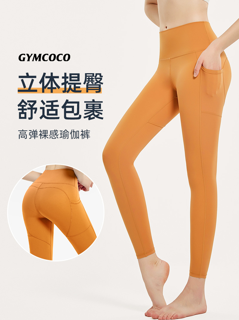 New Lulu Yoga Pants Women's Naked Peach Hip Sports Tight Fitness Pants Bilateral Pocket Running Cycling Pants