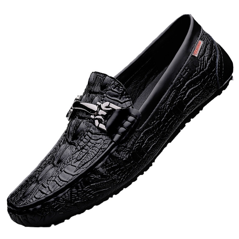New Men's Shoes, Crocodile Leather Loafers, Genuine Leather Versatile Shoes, All-Season High-End Trendy Casual Moccasins for Men