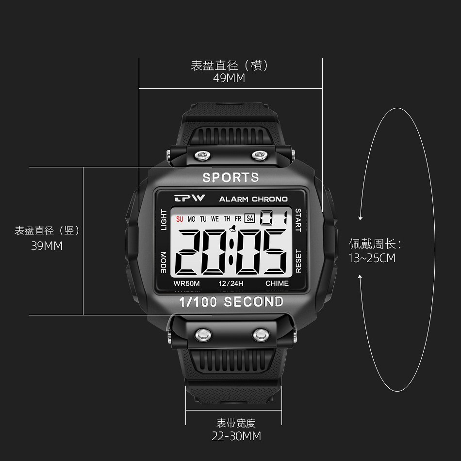 New Cool Multifunctional Men's Electronic Watch Luminous Waterproof Middle and High School Student Alarm Clock Calendar Sports Watch