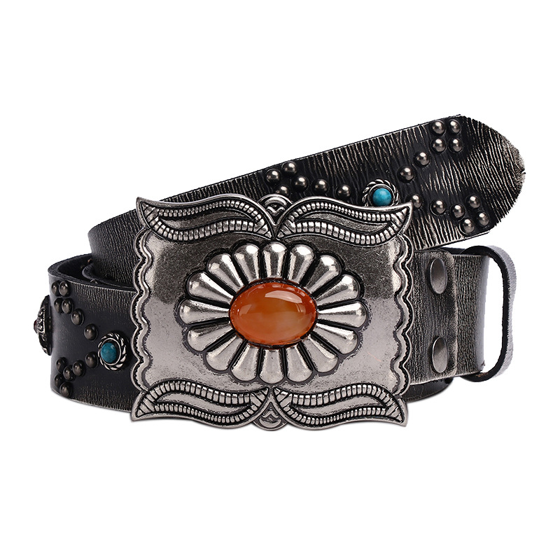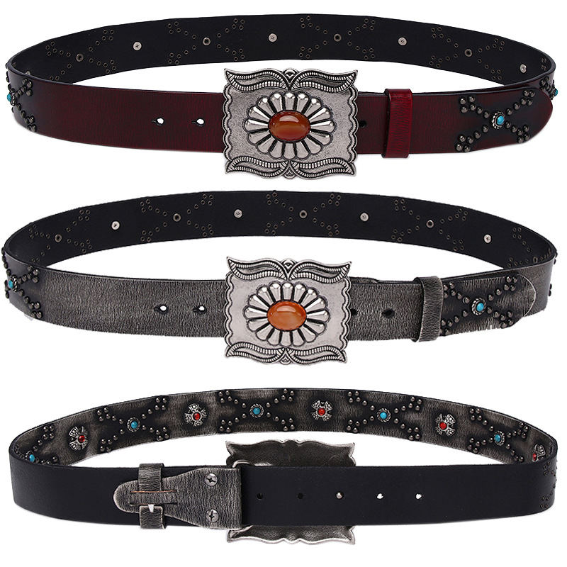 New Rivet Belt for Men and Women, Decorative Punk Style Belt, First Layer Cowhide, Trendyy Couple with Diamonds, Two-Color Belt