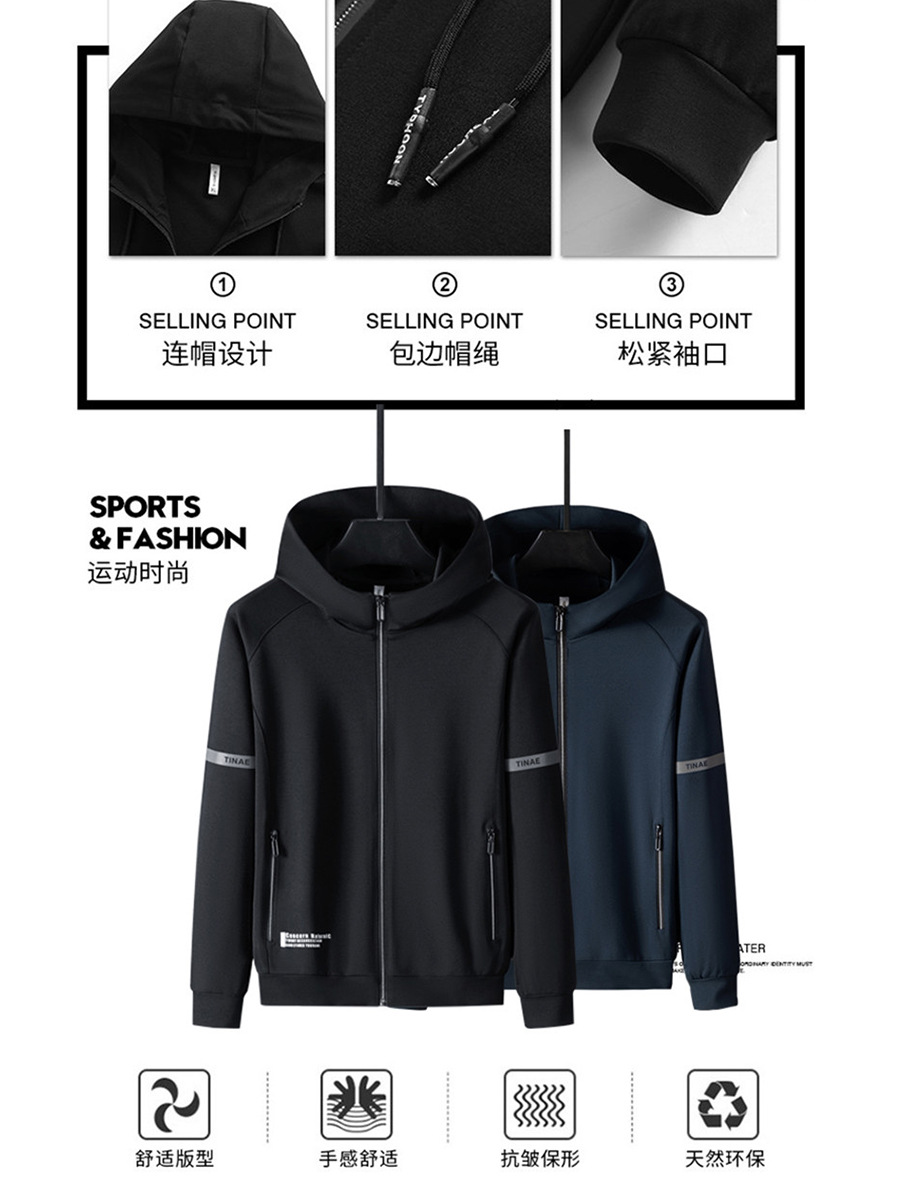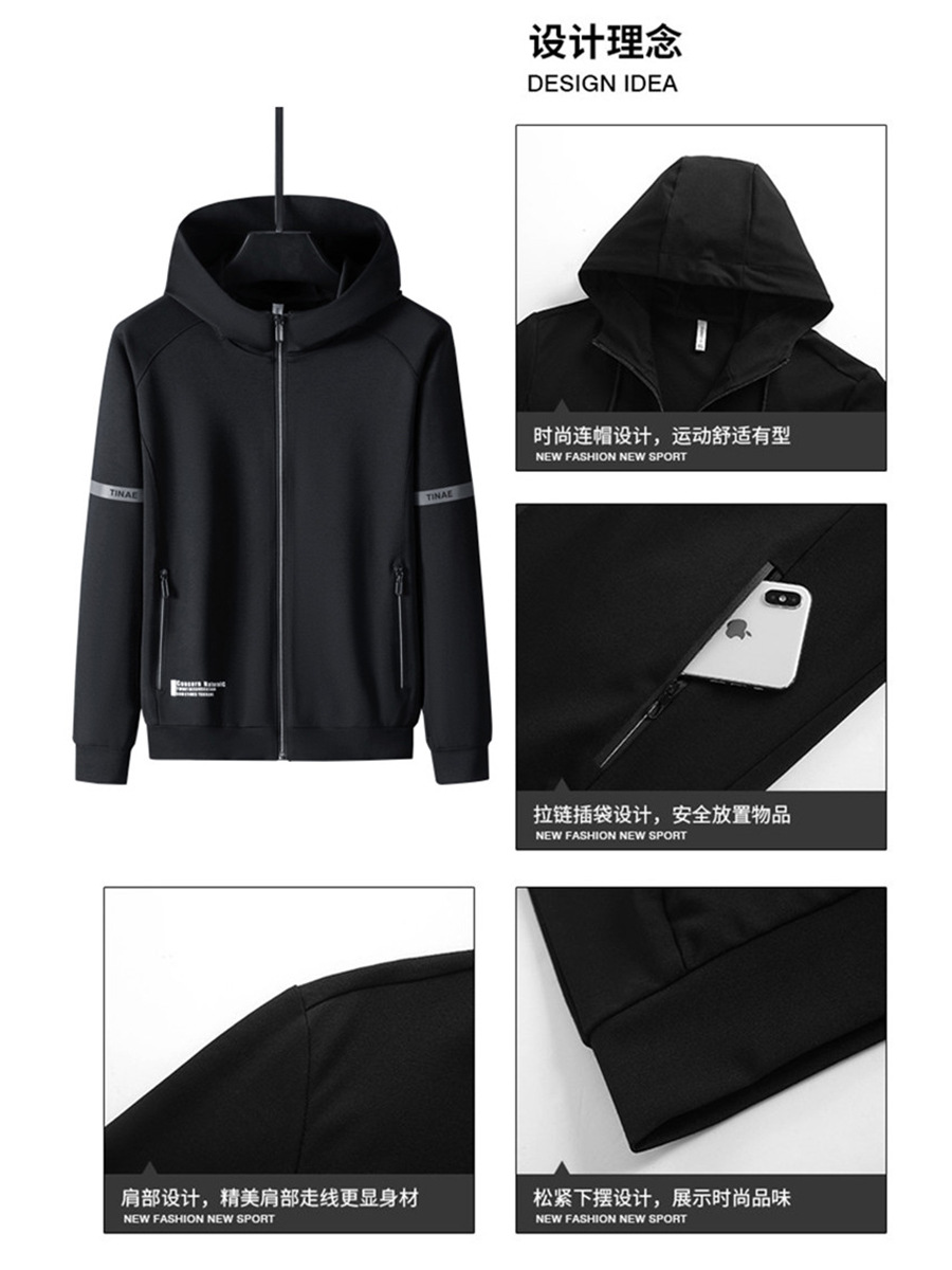 New Spring and Autumn Sports Suit Men's Spandex Two-piece Loose Hooded Large Size Casual Sweater Cardigan Top Trendy