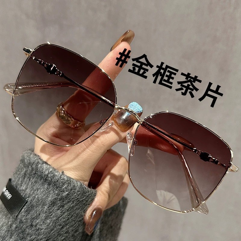 New Style Can Be Equipped with Myopia Sunglasses for Women, Ultra-Light Large Frame Gold Wire Sunglasses, Big Face Sun Protection, Fashionable Brown Sunglasses
