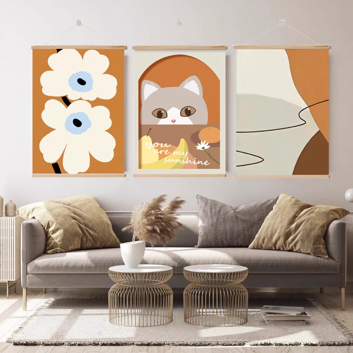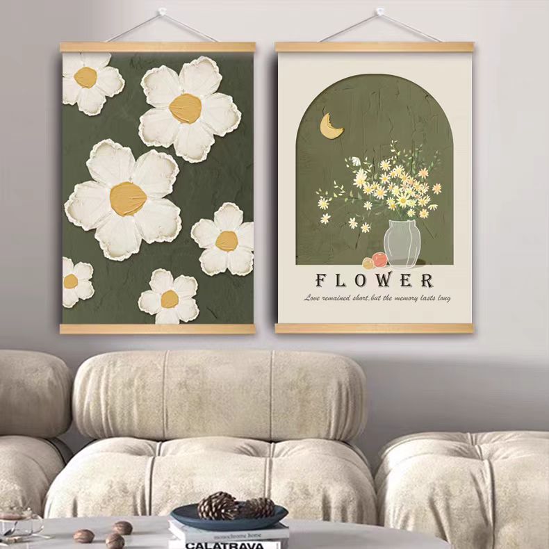 New Style Hanging Painting Ins Cream Style Living Room Guesthouse Room Fresh Oil Painting Solid Wood Hanging Scroll Decorative Painting Entrance Hall