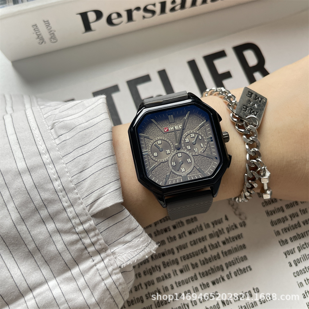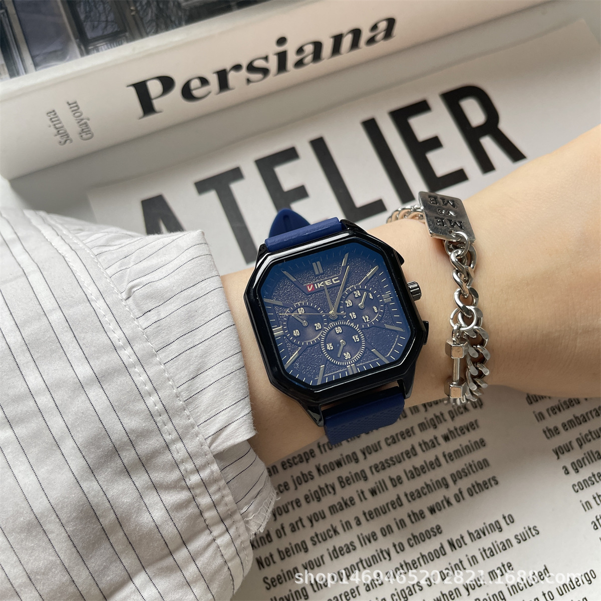 New Style Simple Large Dial Teenage Student Women's Watch Square Heavy Industry Three Eyes Square Sports Fashionable Men's Wristwatch