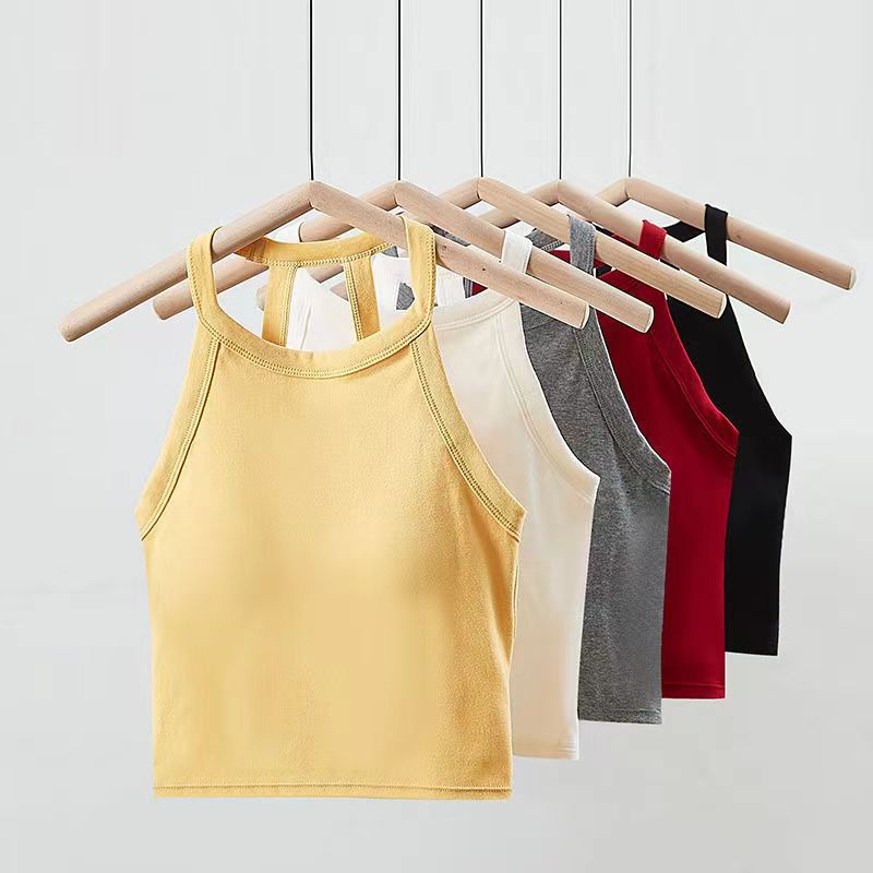 New Sweet and Spicy Hanging Neck Sling Vest Belt Chest Pad Inner Wearing Outer Wearing Slim-fit Slimming Spice Girls Beautiful Back Short Top for Women