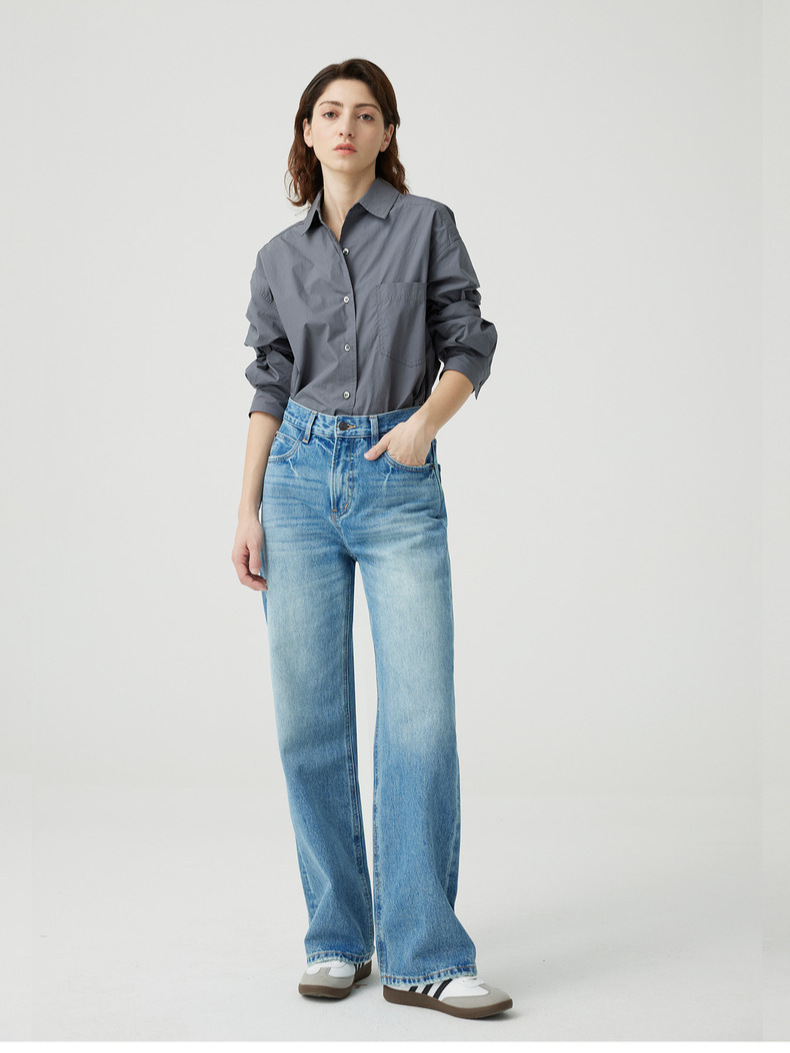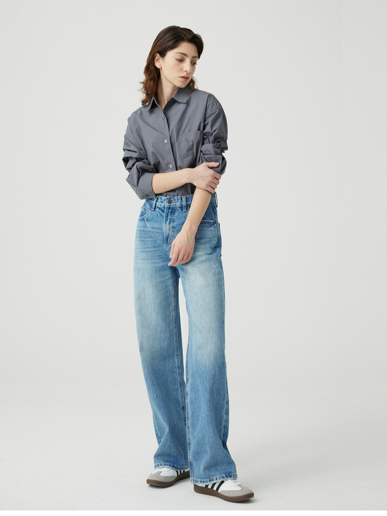 [New Thin Fleece Version] All-Season Commuting Y*L Same Style Turkish Cotton Washed Straight High-Waisted Jeans for Women