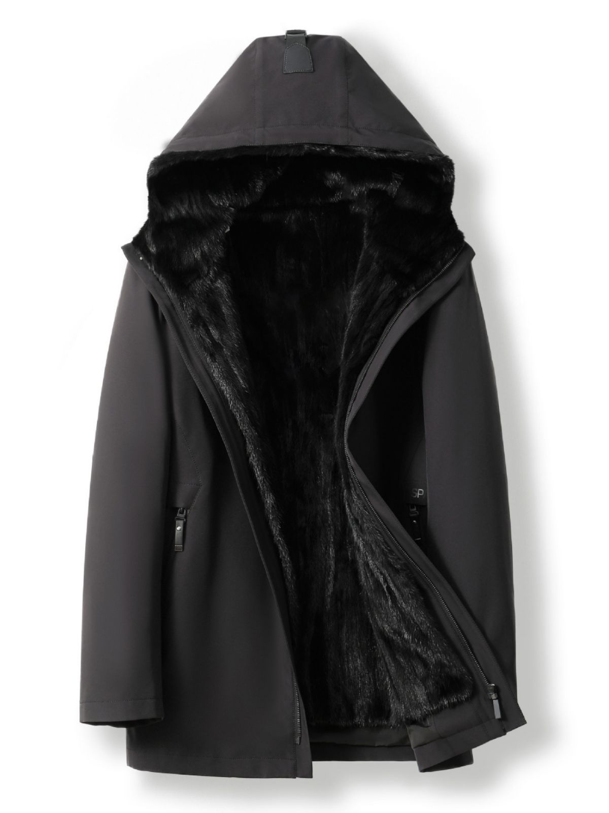 New winter mink liner detachable parka men's fur integrated hooded nylon overcoat coat