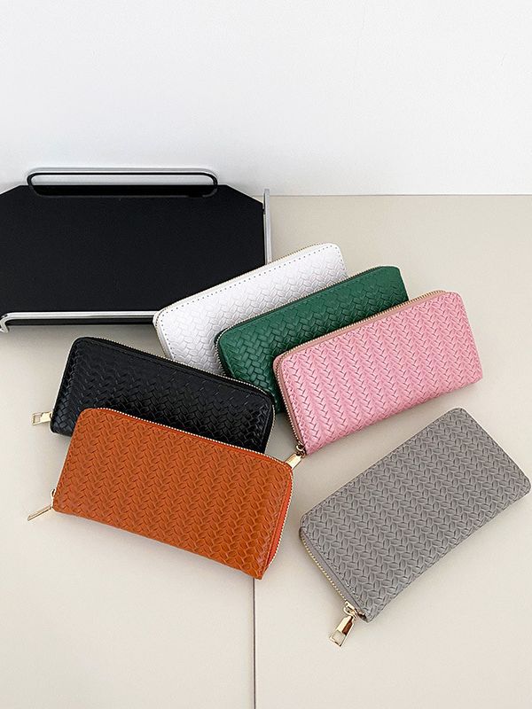 New Women's Wallet Mid-Length Zipper Clutch European and American Style Fashion Export Pu Leather Woven Wallet Coin Purse