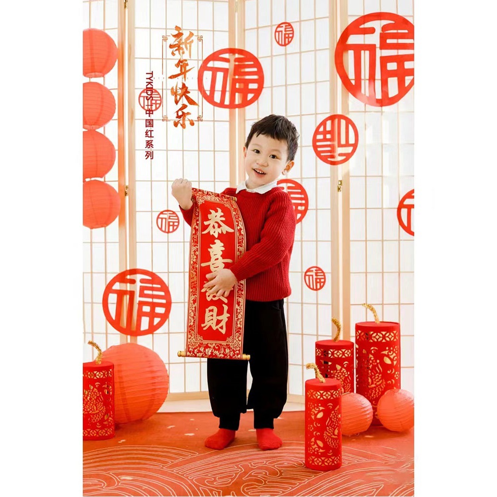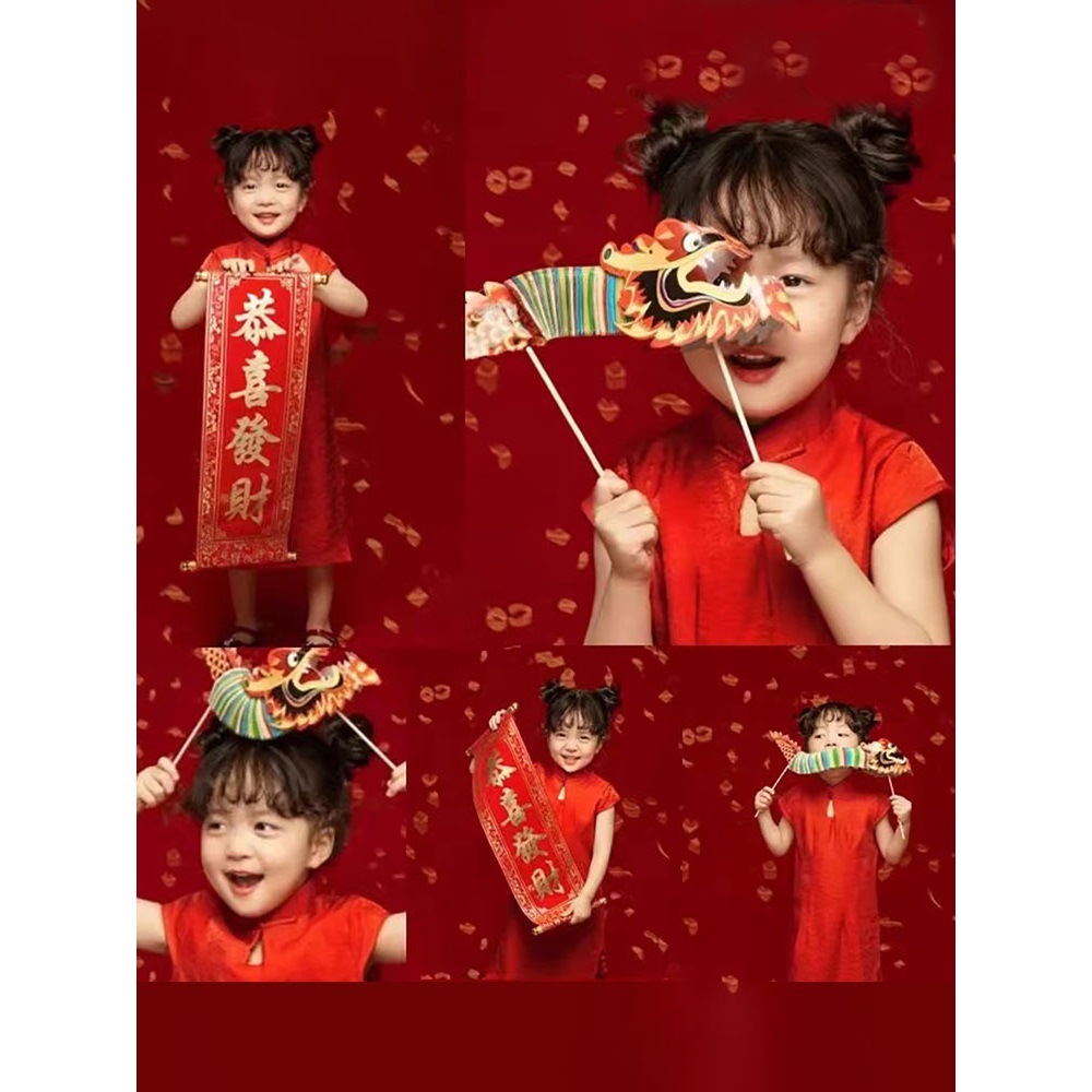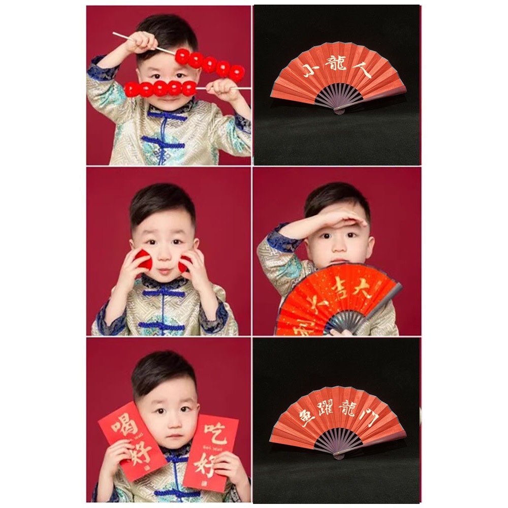 New Year Children's Photography Props Red Fan Baby Year of the Dragon Photo Couplet Candied Hawthorn New Year Photography Studio