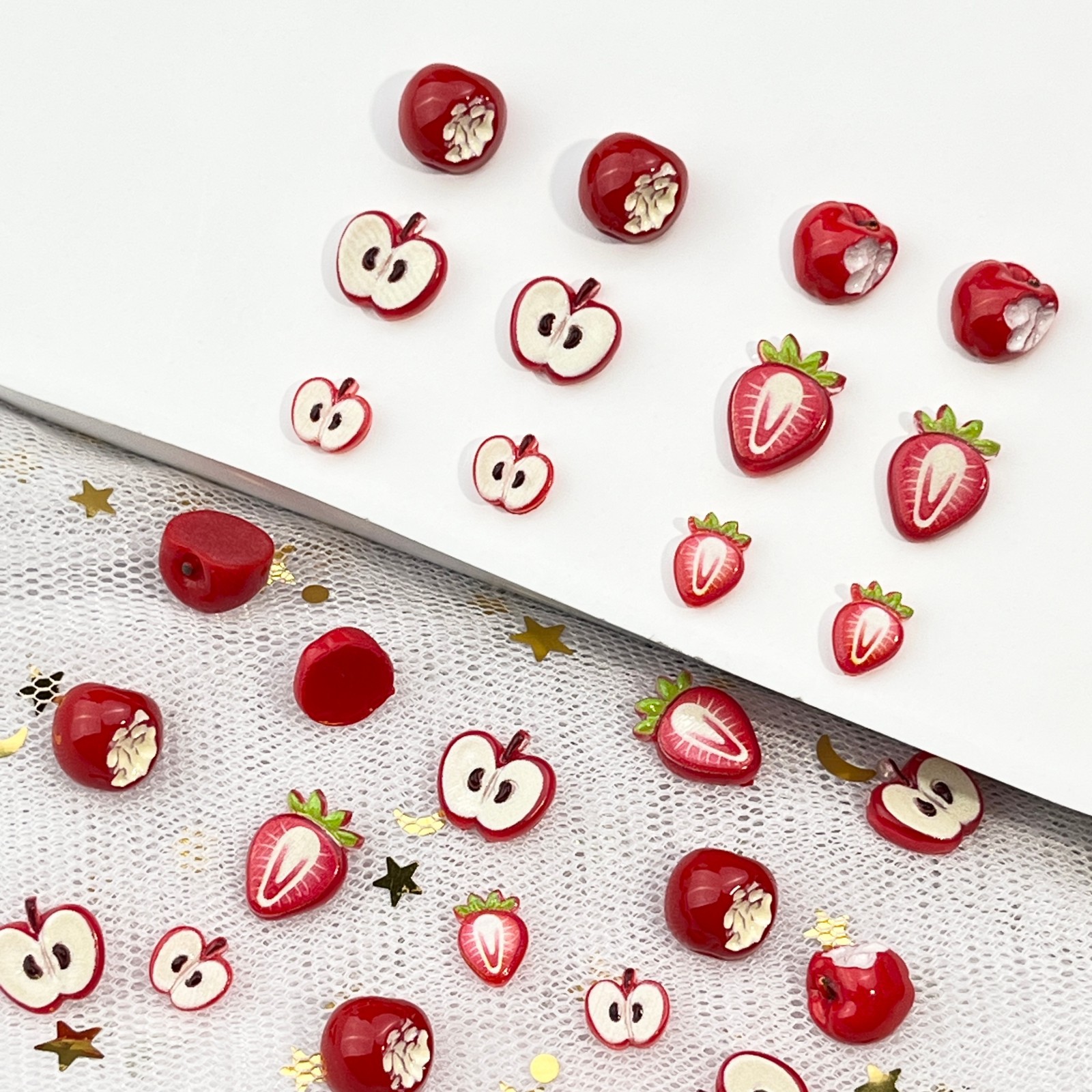 New Year's Bite Apple Cartoon Nail Art Jewelry Stereo Sliced Strawberry Fruit Resin Diamond DIY Nail Accessories