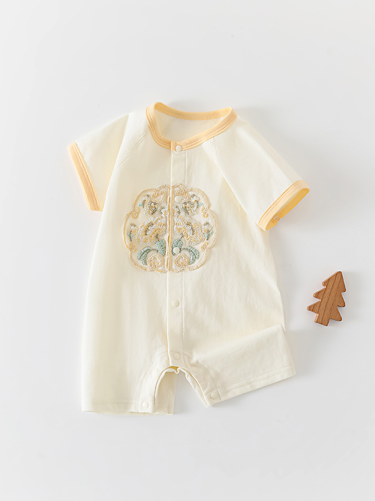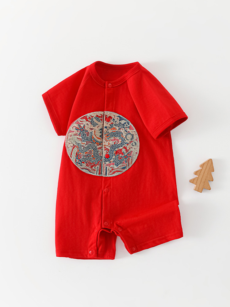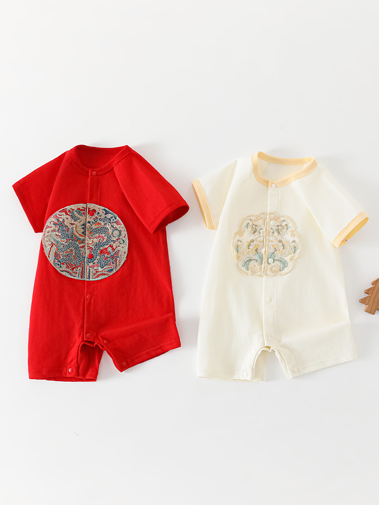 Newborn Climbing Clothes Full Moon Baby Clothes Festive Hundred Days Banquet One Year Old Short Sleeve Chinese Style Summer Baby One-piece Clothes