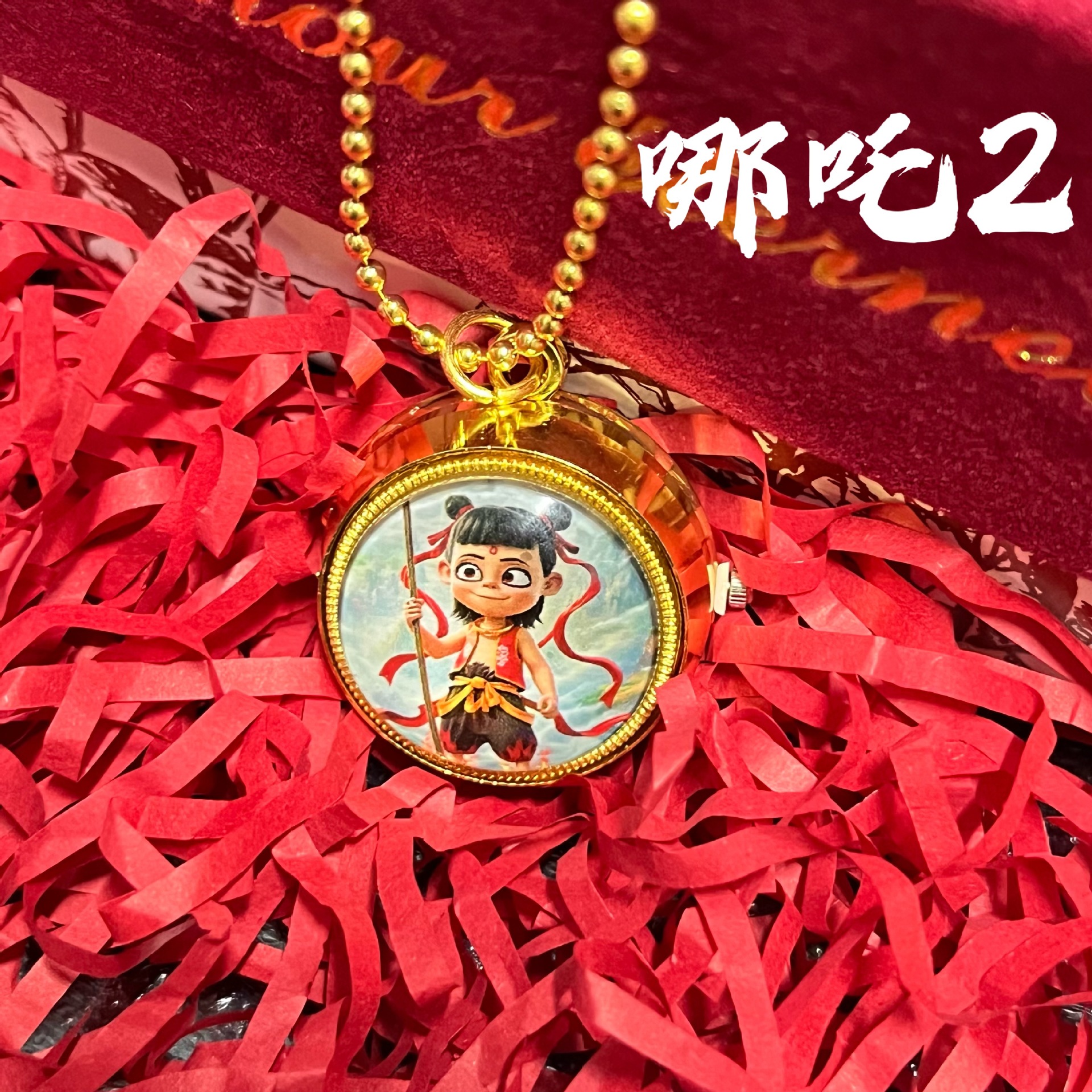 Nezha 2 Movie Pocket Watch Cartoon Gyro Rotating Hanging Watch Children Students Men's and Women's Necklace Watch Surrounding Tourist Attractions