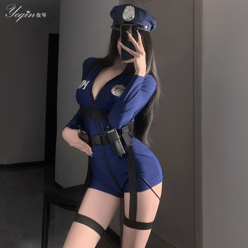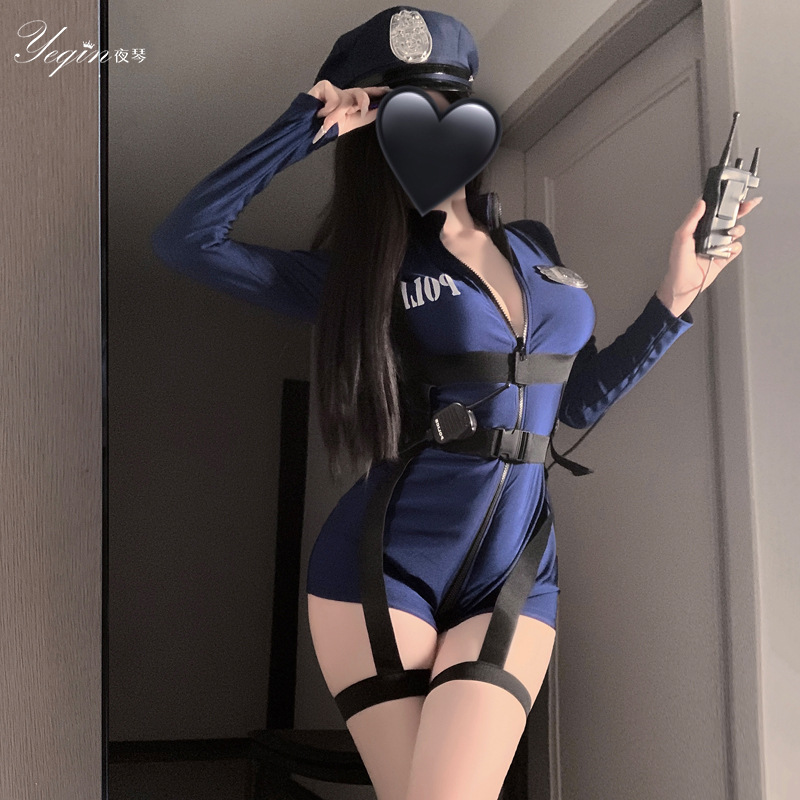 Night piano sexy lingerie sexy policewoman uniform temptation cos role-playing stewardess open conjoined suit 7505