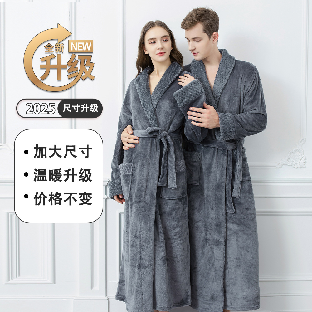 Nightgown Women's Autumn and Winter Long Coral Fleece fleece-lined Thickened Bathrobe for Couple Flannel Men's Pajamas Winter Home Clothes