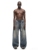 No Faith Studios Nfs Washed Distressed Whiskered Lace-Up Denim Pants Handmade Ripped Wide-Leg Pants