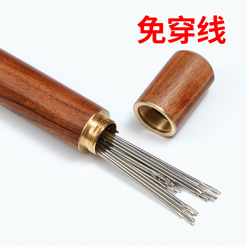 No-Threading Required Home Sewing Needle and Thread Set for the Blind, Made of Sandalwood and Rosewood, Includes Needle Tube and Needle Bottle for Handmade Use
