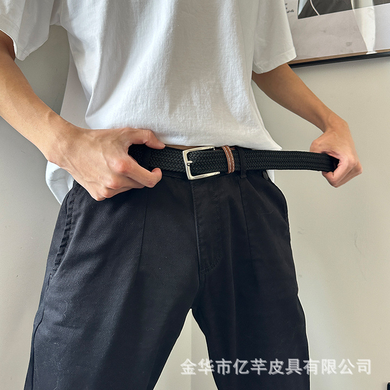 No Punching Canvas Belt Men's Woven Korean Fashion Belt Black Trendy Versatile Student Pants Belt Manufacturer Wholesale