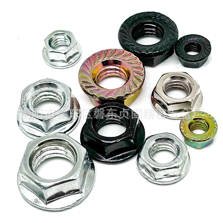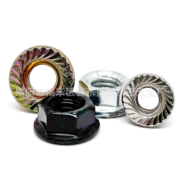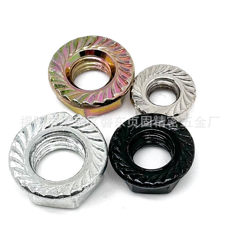 Non-slip nut with dielectric nickel plated black plated anti-loosening flange nut white zinc color zinc outer hexagon with gasket flange nut