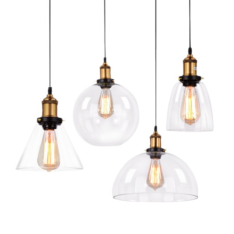 Nordic Retro Simple Transparent Glass Restaurant Chandelier Bar Restaurant Commercial Lighting Cafe Lamp Retro Style