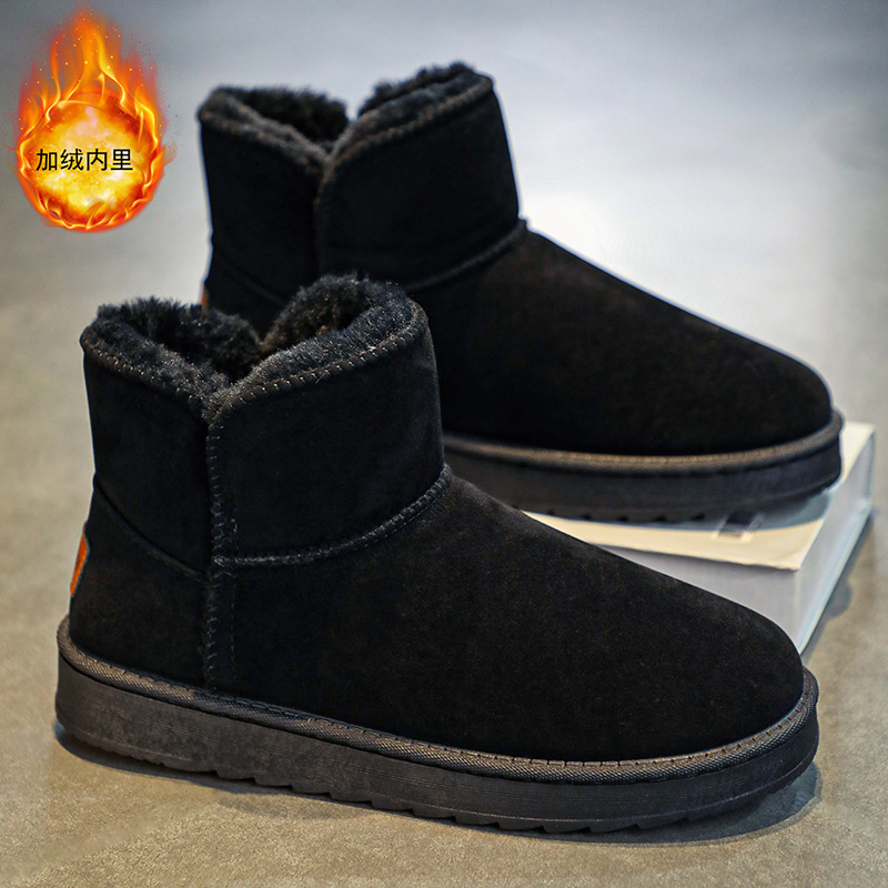 Northeast Warm Cotton Shoes Winter fleece-lined Thickened Snow Boots Fur One Cotton Boots Men's Waterproof Non-slip Bread Shoes