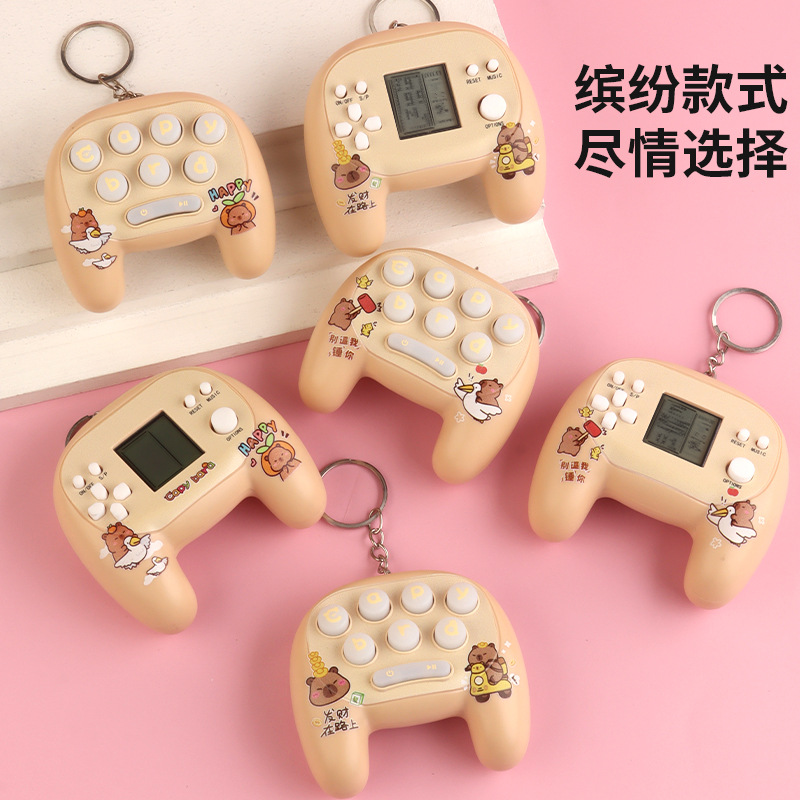 Nostalgic Handheld Whack-A-Mole Game Console Tetris Game Console Keychain Capybara Toy