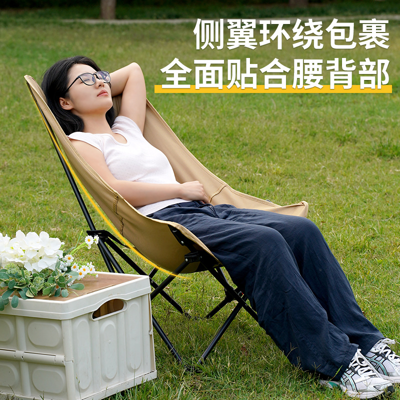 Not Just Wilderness Portable Outdoor Camping Folding Chair Stool, Fishing Sketching Camping Recliner, Adjustable Moon Chair