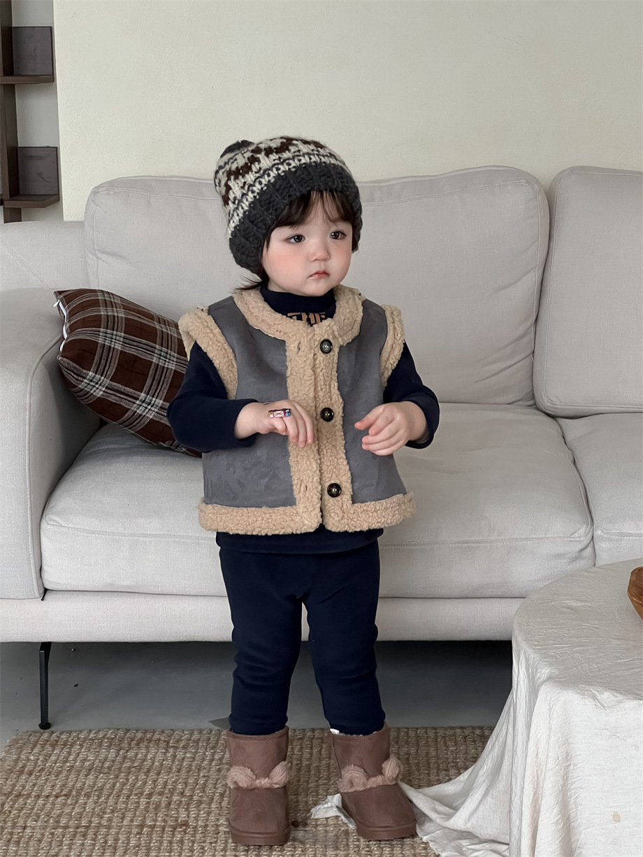 Children's Autumn and Winter Clothes, Thickeneded Vest Jacket, Korean Style Kidsren's Clothing, Baby Boy Half Turtleneck Bottoming Shirt, Leggings Suit