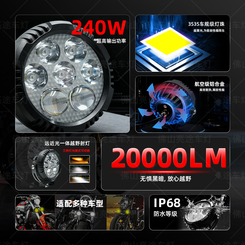 Off-Road Vehicle Modified Spotlight with Integrated Far and Near 240W Ultra-Bright Condenser Lens Led Headlight for Motorcycles