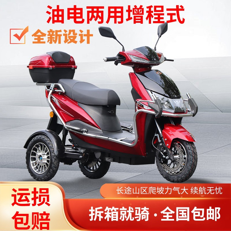 Oil-electric hybrid dual-purpose extended-range electric tricycle battery car fuel motorcycle household walking can be licensed