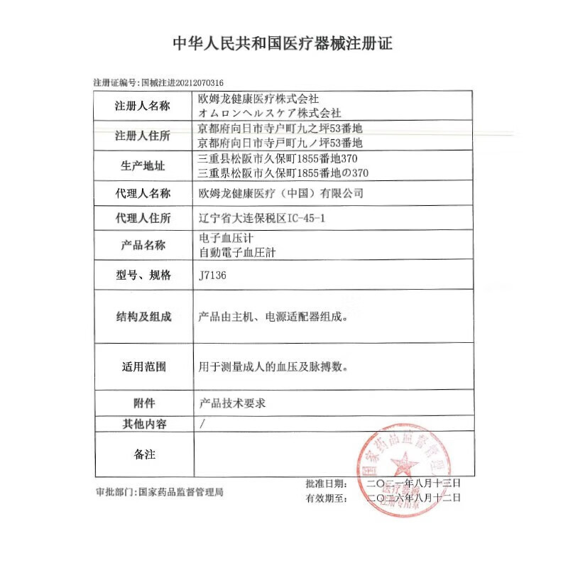 Omron electronic sphygmomanometer HEM-J7136 imported full-automatic upper arm blood pressure measuring instrument