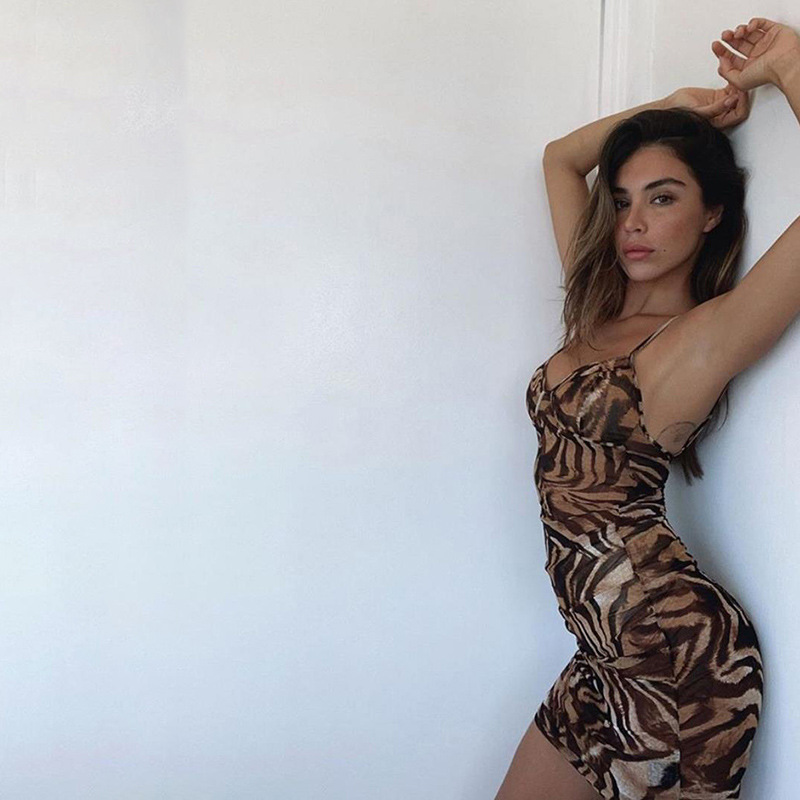 One-piece delivery European and American cross-border women's clothing tiger pattern summer thin casual home party low-cut sling dress fashion