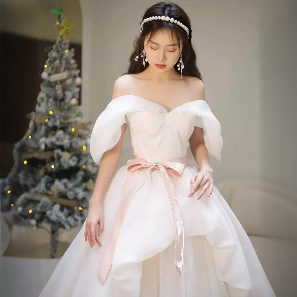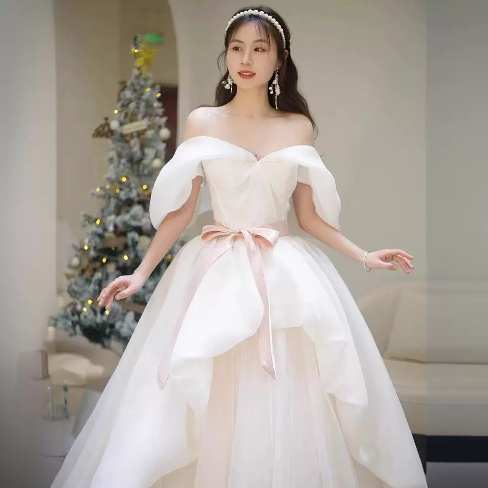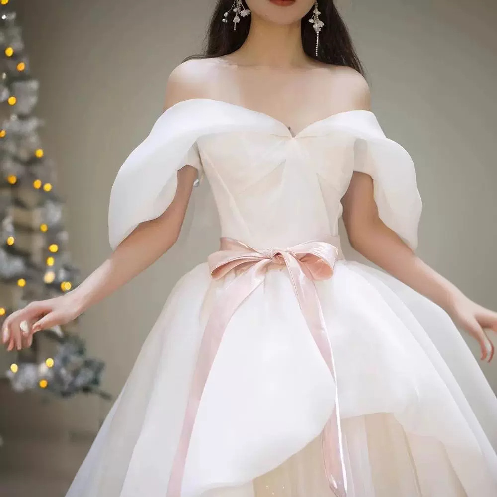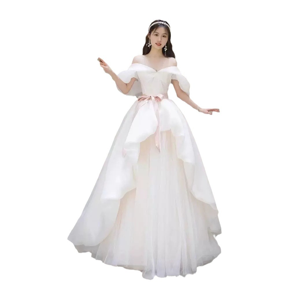 One-Shoulder Forest Gauze Evening Dress for Women 2025 New Bridal Wedding Dress Petite Princess Dress High-End