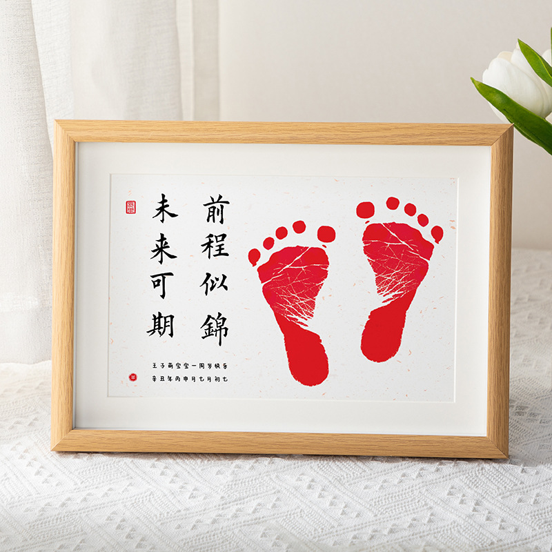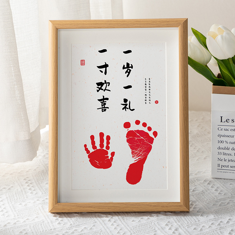 One Year Old Footprint Table Baby Hand and Foot Print Photo Frame 100 Days Commemorative Frame a4 a3 Wall Hanging Creative Picture Frame Hand and Footprint
