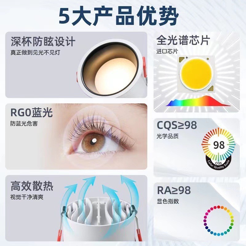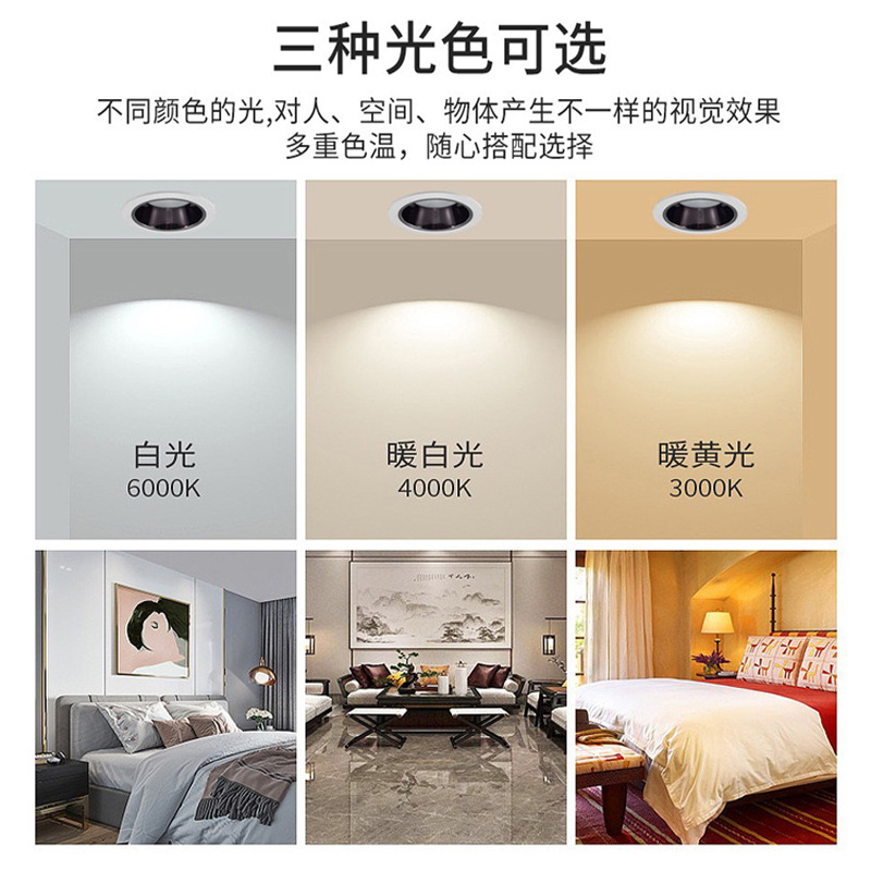 Opal Downlight Embedded Household Non-main Lamp Narrow Border Living Room Deep Anti-glare Hole Lamp Three-color Variable Light Hole Lamp Barrel Lamp