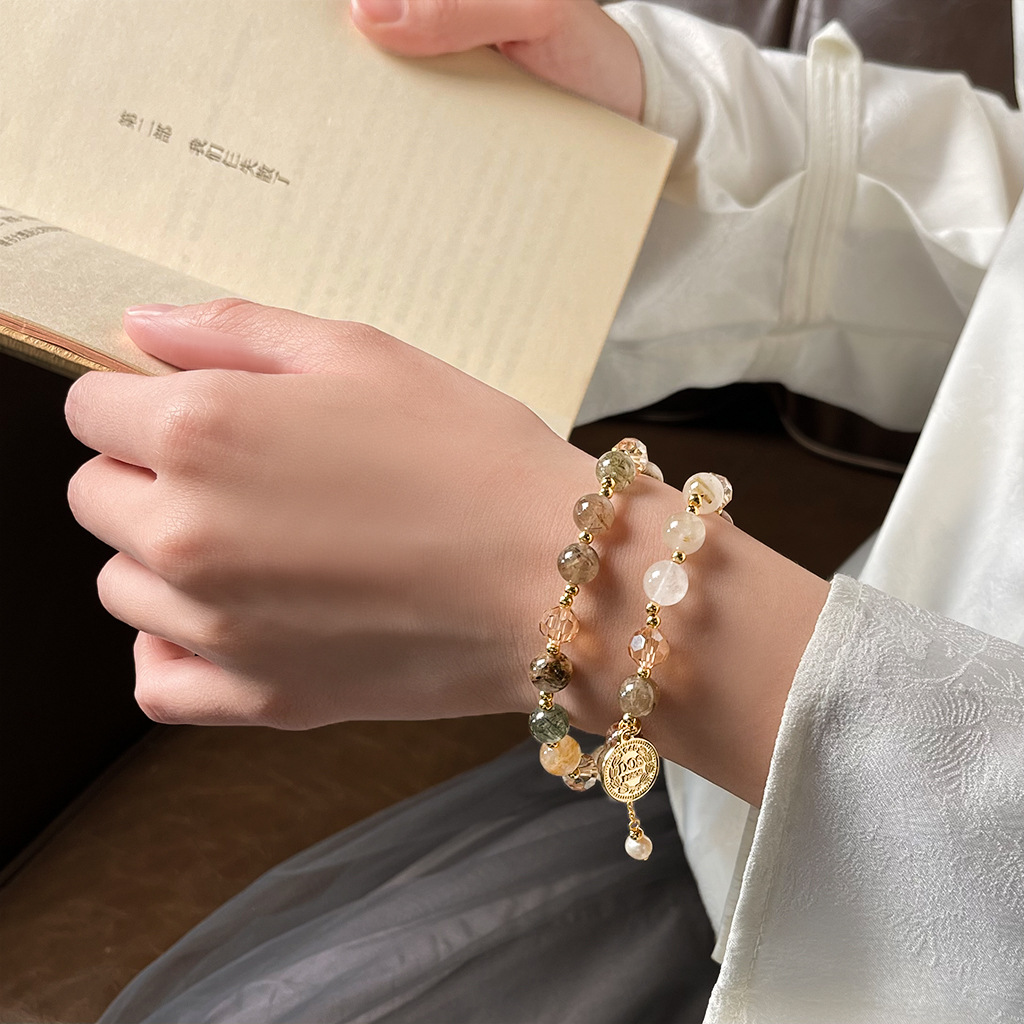 Original Hand-made Natural Stone Design Sense Crystal Bracelet New Chinese Style Freshwater Pearl Retro Elegant Bracelet Jewelry
