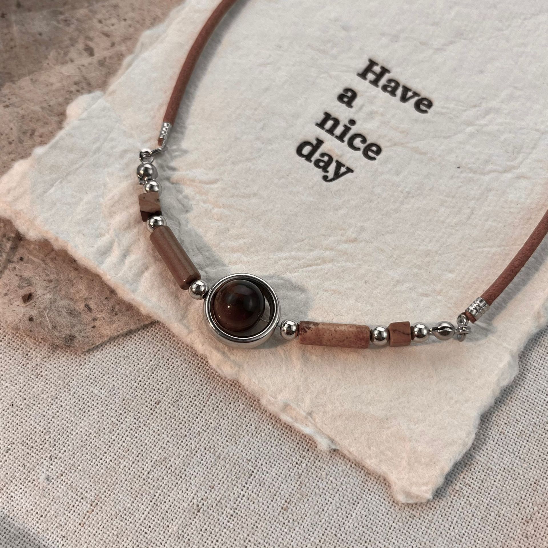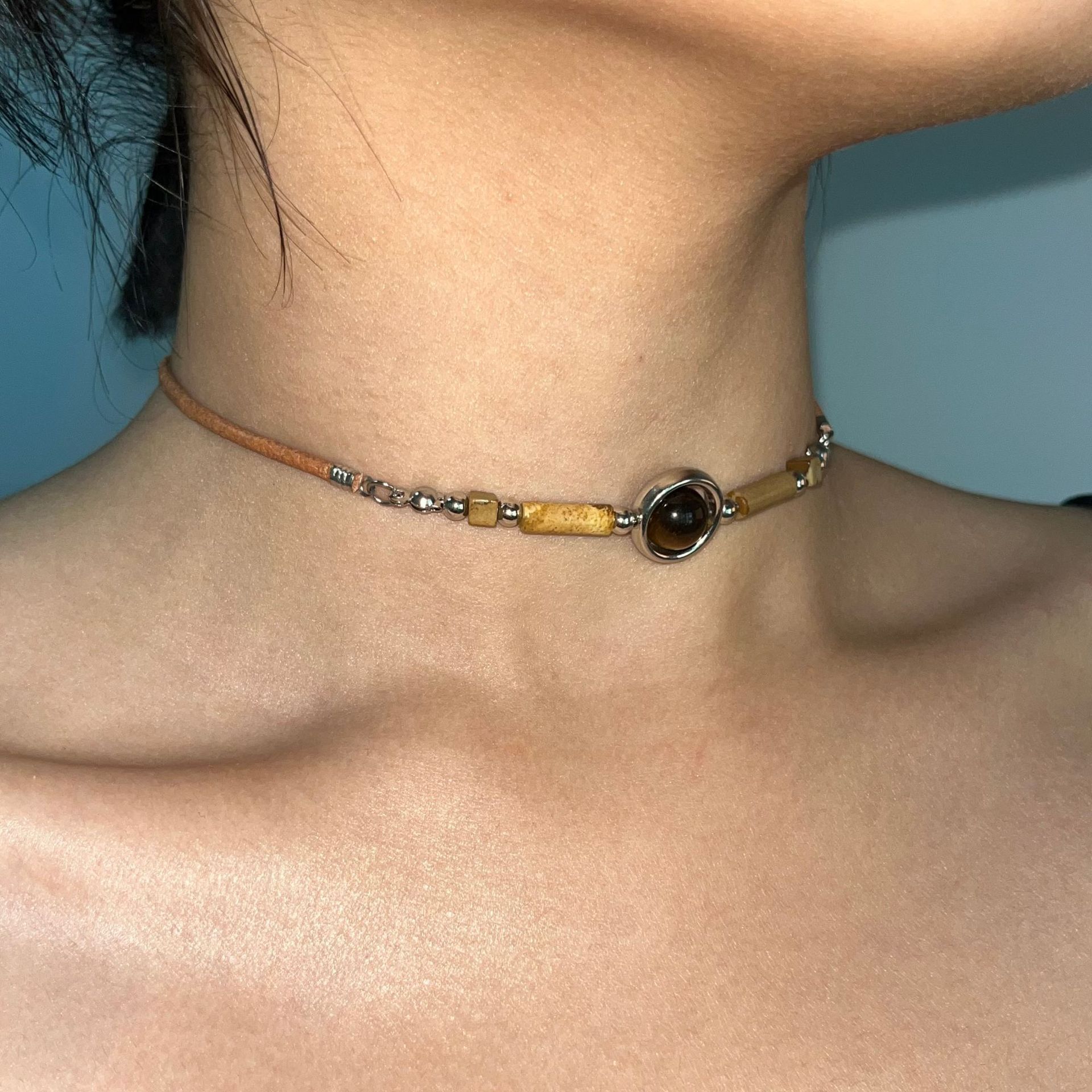 Original Retro New Chinese Tiger Eye Stone Beaded Chain Women's Collarbone Chain Simple Fashion Niche Spice Girl Personalized Accessories
