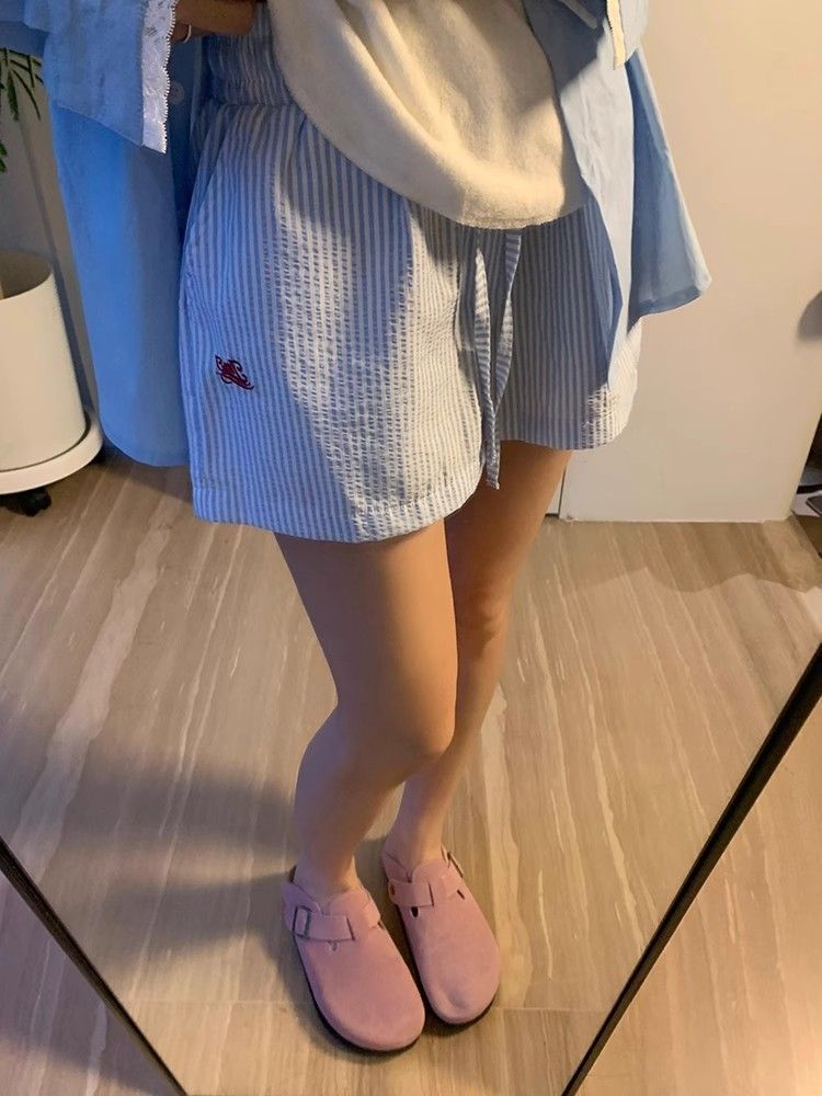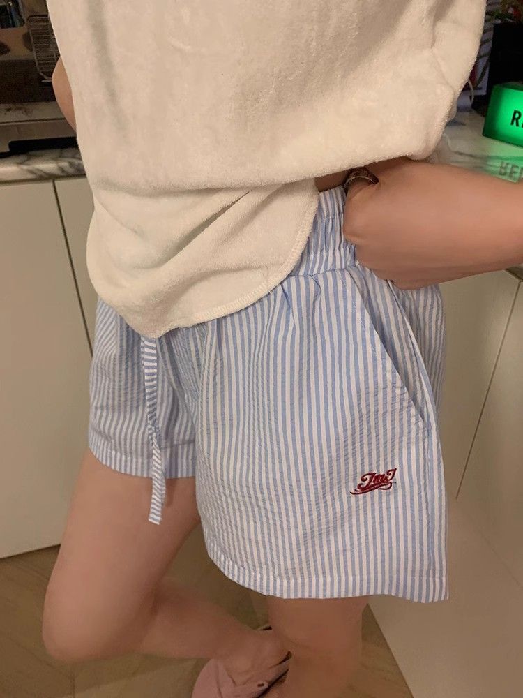 Original striped fabric vertical striped drawstring letter embroidery wide leg shorts women's summer loose slim casual pants wholesale