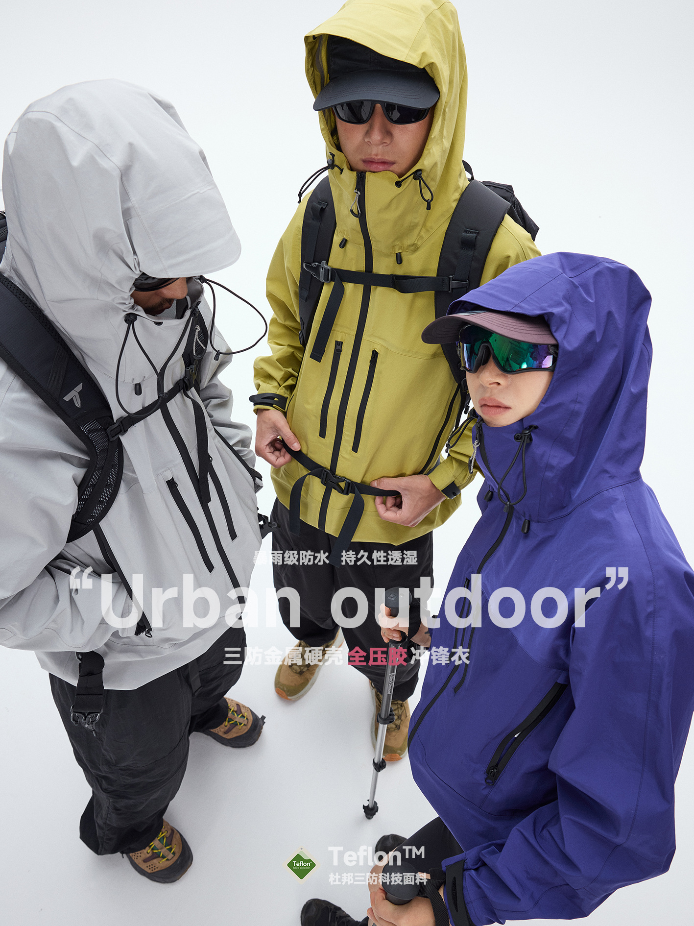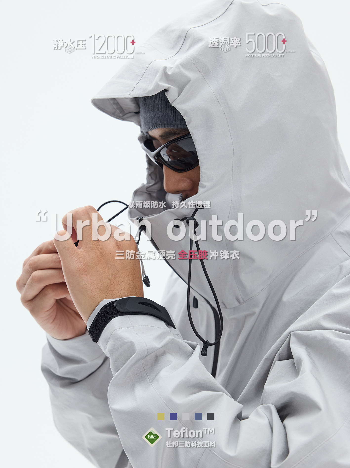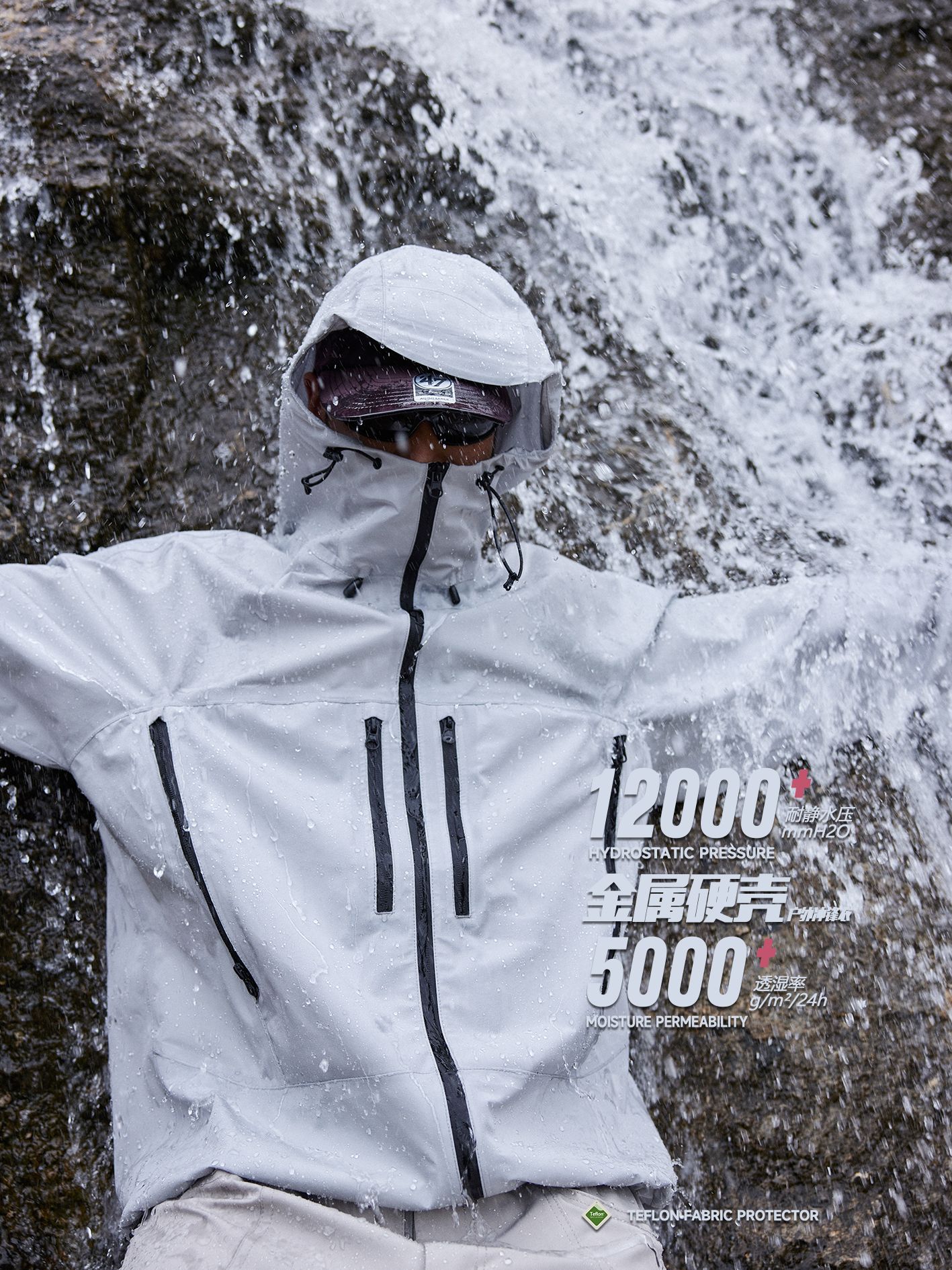 Outdoor Dupont Three-Proof Metal Hard Shell Full Rubber Pure Color Zipper Mountaineering Hooded Jacket Jacket for Men and Women