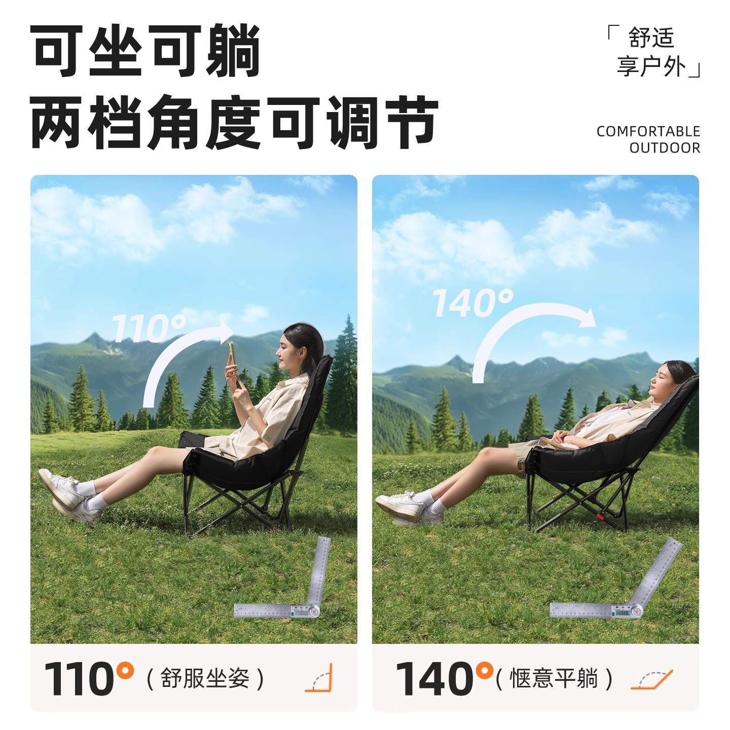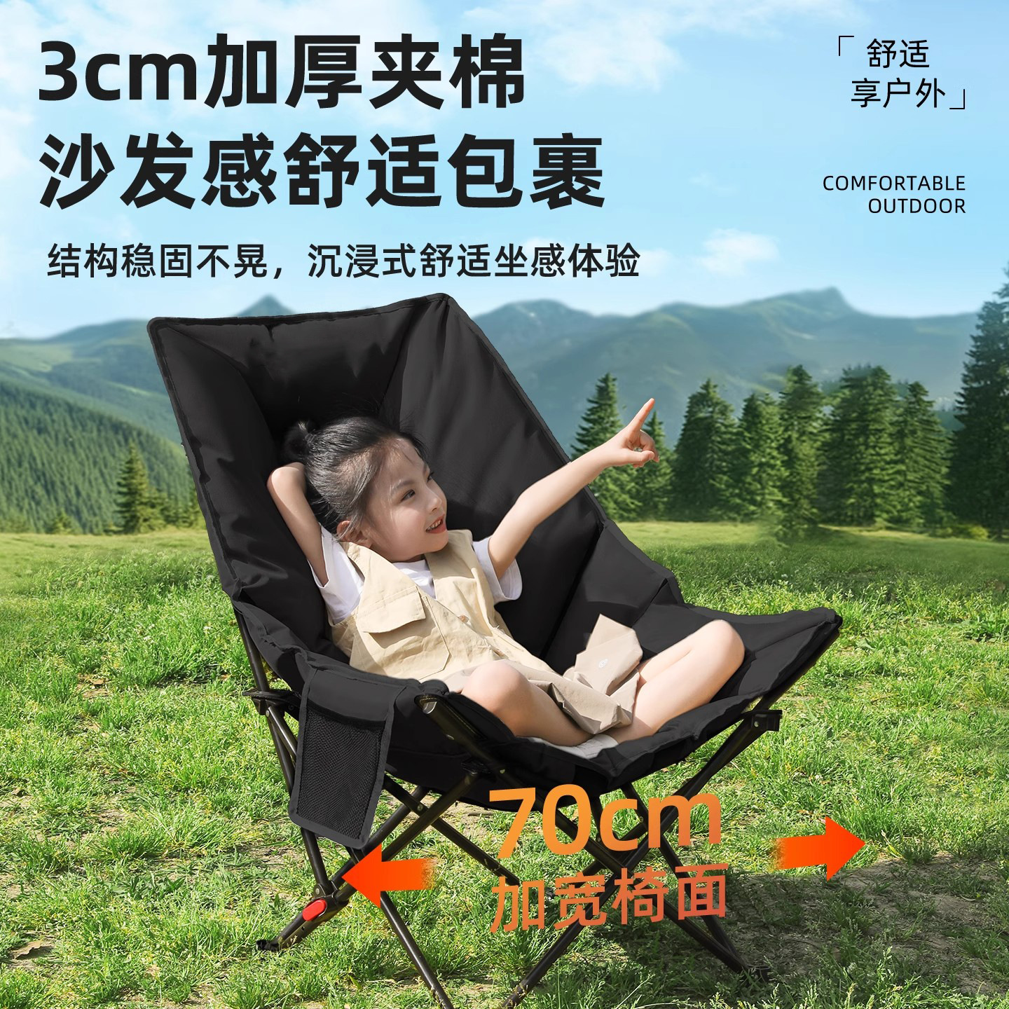 Outdoor Portable Folding Chair Plus Cotton Moon Chair Adjustable Camping New Chair Sitting and Lying Dual-Purpose Fishing Beach Chair